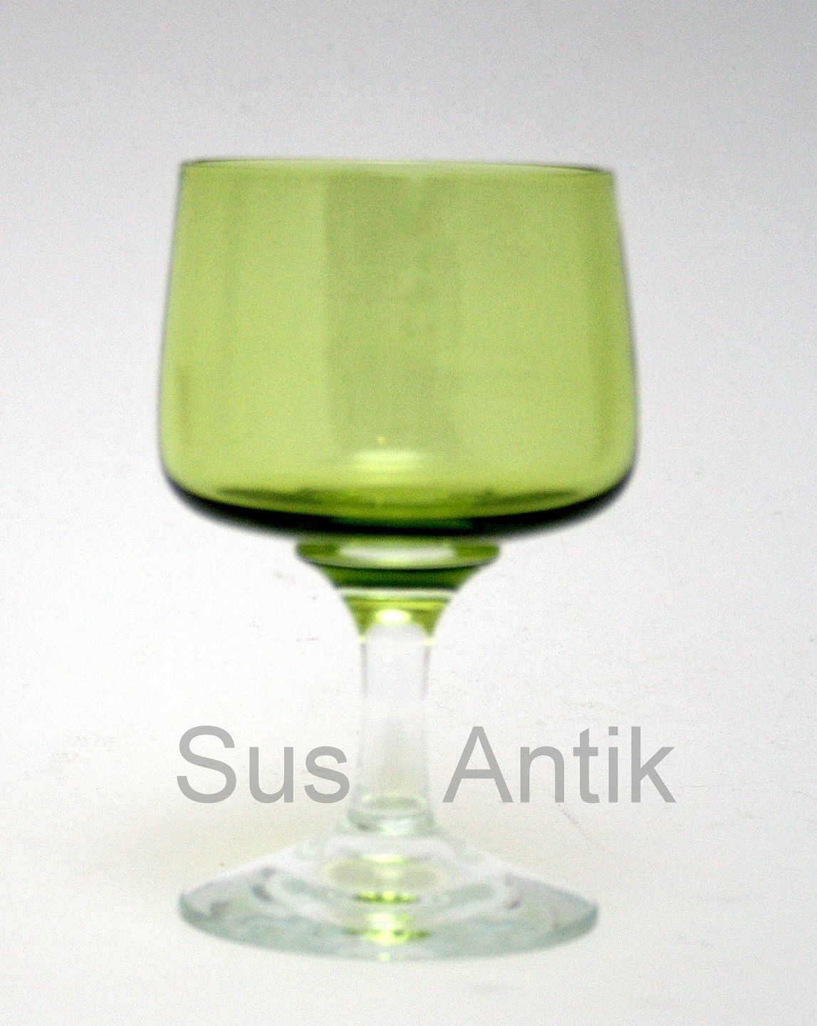 Holmegaard, Mandalay, designet af Per Lütken i 1962, udgår i 1975. Hvidvin med grøn kumme. Højde 11,5 cm. Diameter 6,4 cm. Pris: