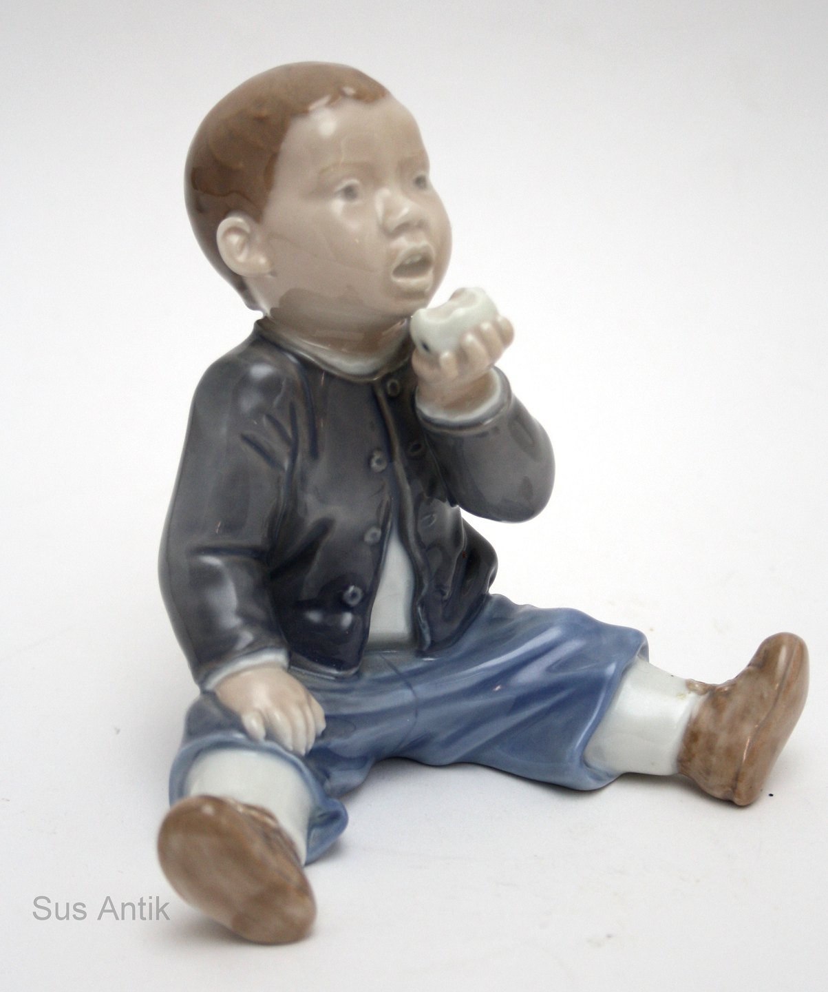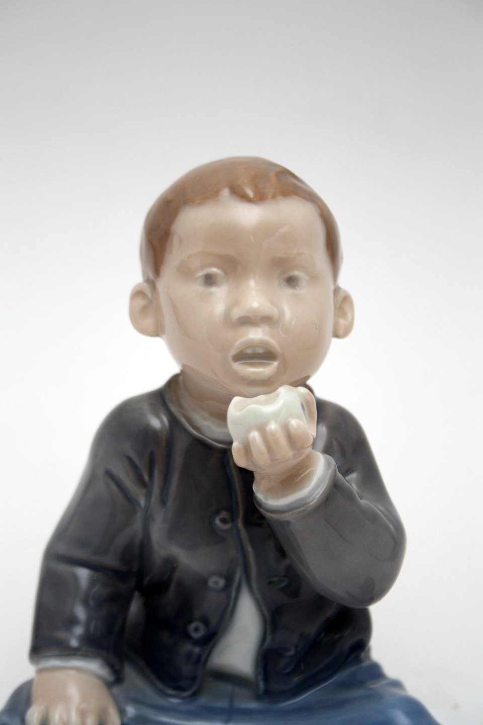 Royal Copenhagen, Dreng spiser æble. Nr. 4680. Designet af John Galster. Højde 12,5 cm. Fin stand. I. sortering. Pris: SOLGT