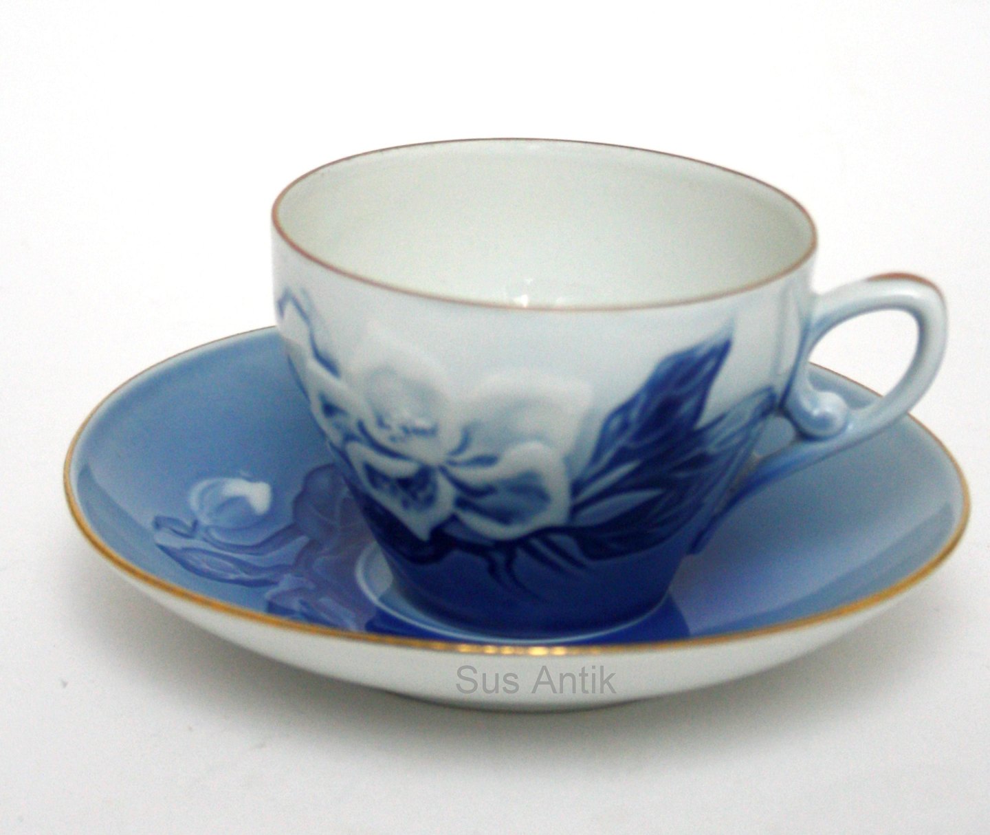 Bing & Grøndahl, Julerose med guld. Kaffekop med underkop. Nr. 305. Højde 6 cm. Diameter 8,5 cm. II. sortering. Pris: SOLGT