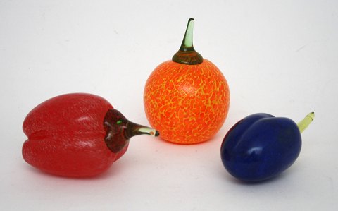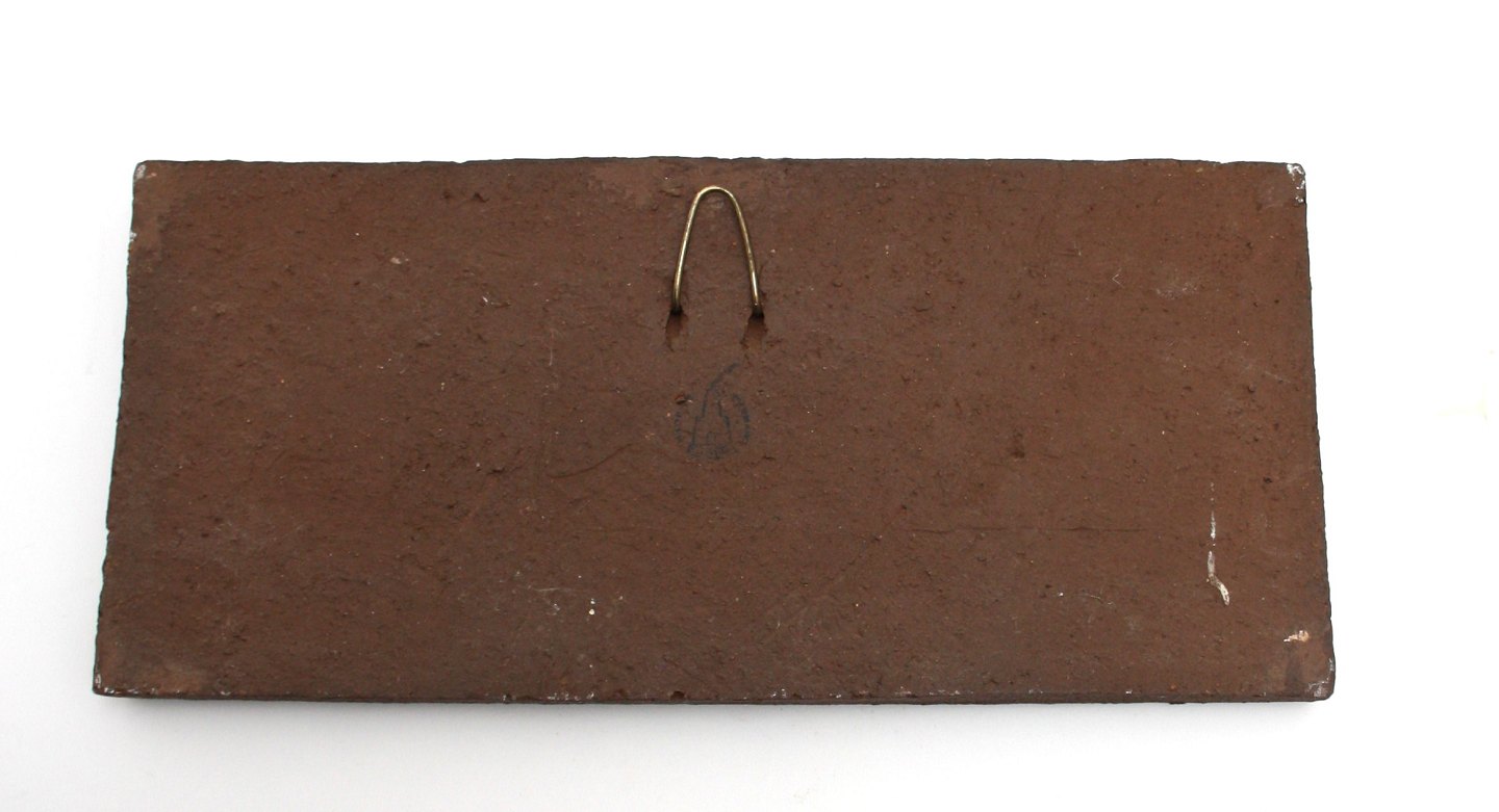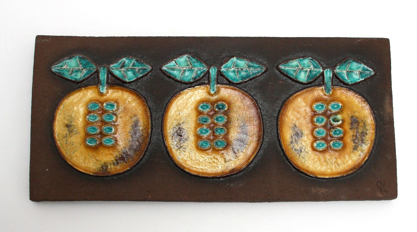 Knabstrup, Relief med 3 glaserede æbler. Designet af Christine Konschak i 1970'erne. Længde 30 cm. Højde 13,5 cm. Pris: SOLGT