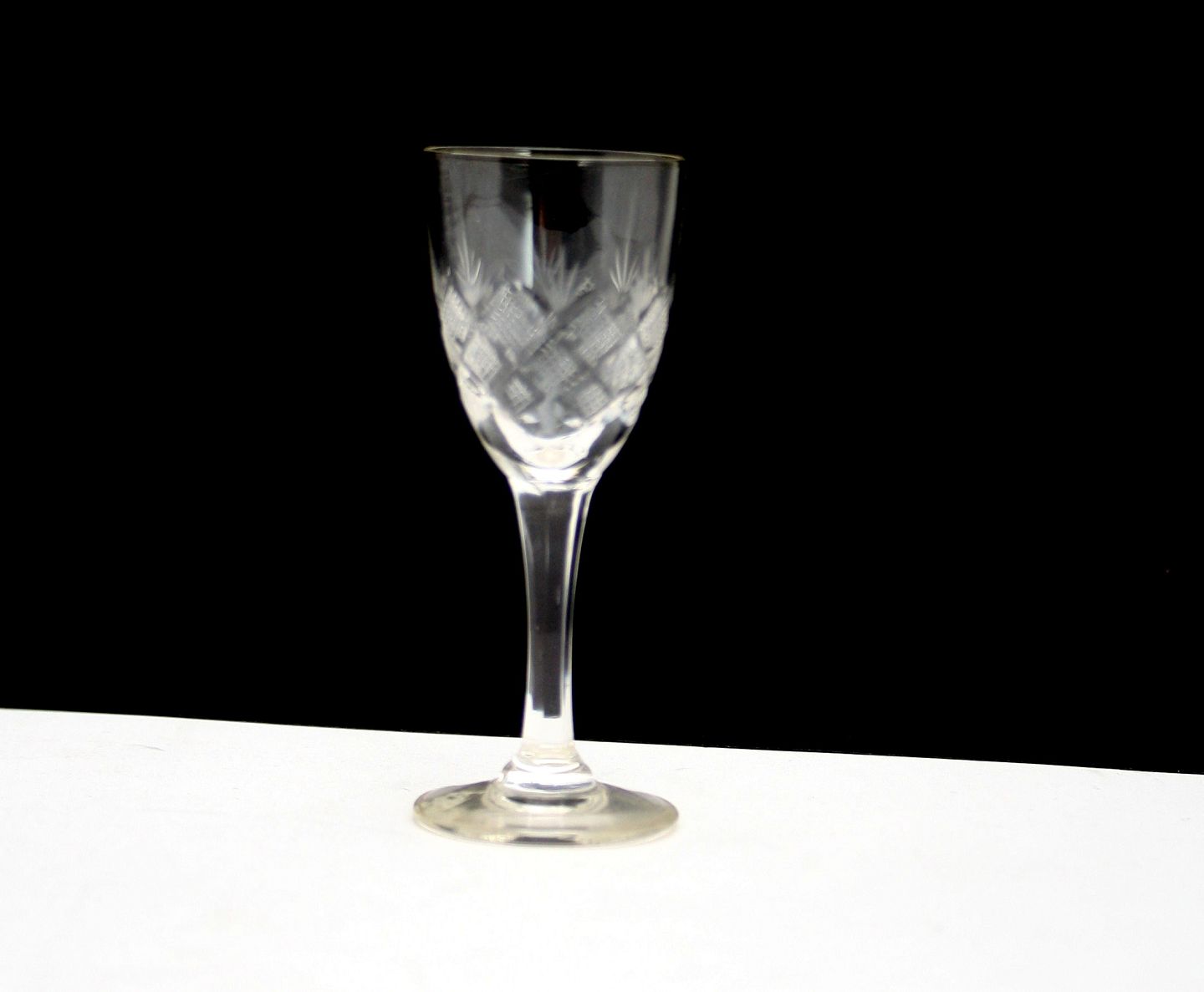 Lyngby glasværk, Antik glas med antik slibning og slebet stilk. Snaps. Højde 9 cm. Diameter 3,5 cm. Pris: SOLGT