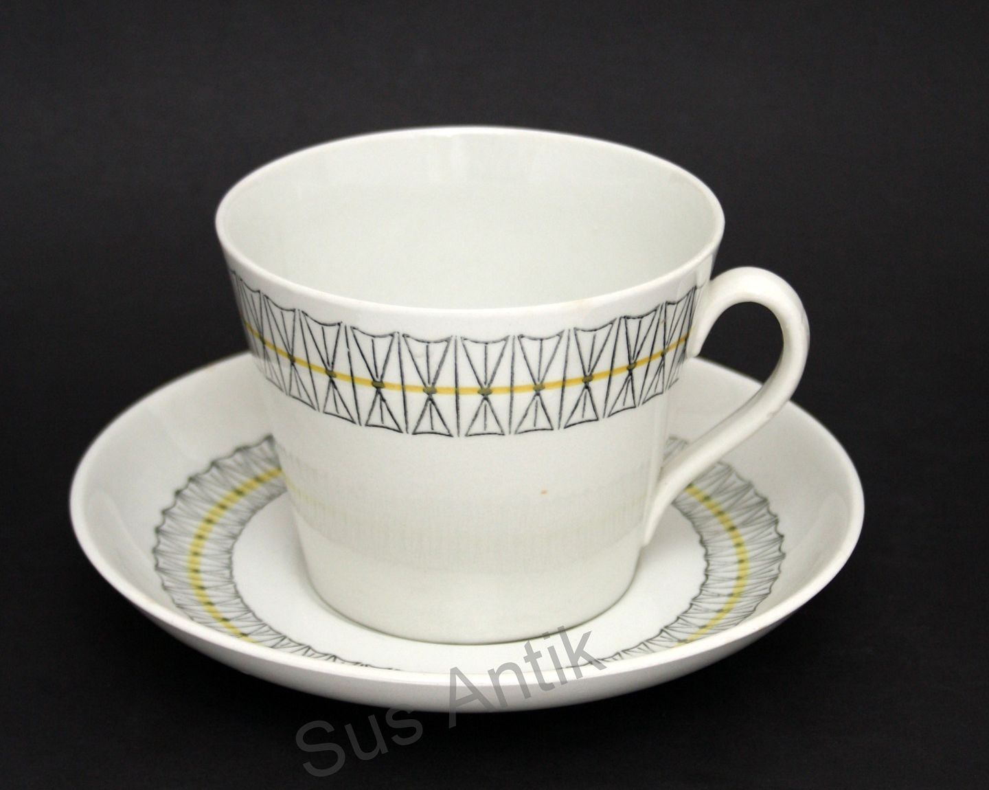 Uppsala-Ekeby, Gefle, Sweden, Kryss, Tekop med underkop. Designet af Helmer Ringström og produceret i perioden 1957-1964. Højde 7,5 cm. Diameter 9,5 cm. Underkop diameter 15,5 cm. Pris: SOLGT