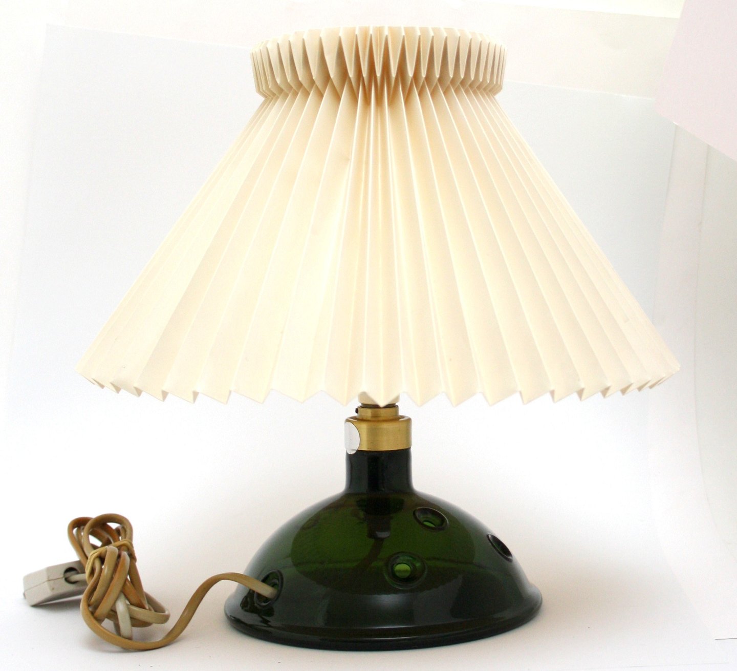 Holmegaard, Meteor bordlampe model A lav med 5 huller. Designet af Michael Bang i 1974. Udgået af produktion 1981. Højde incl. fatning 18 cm. Diameter bund 16 cm. Der er lidt snavs i bunden pga hullerne.