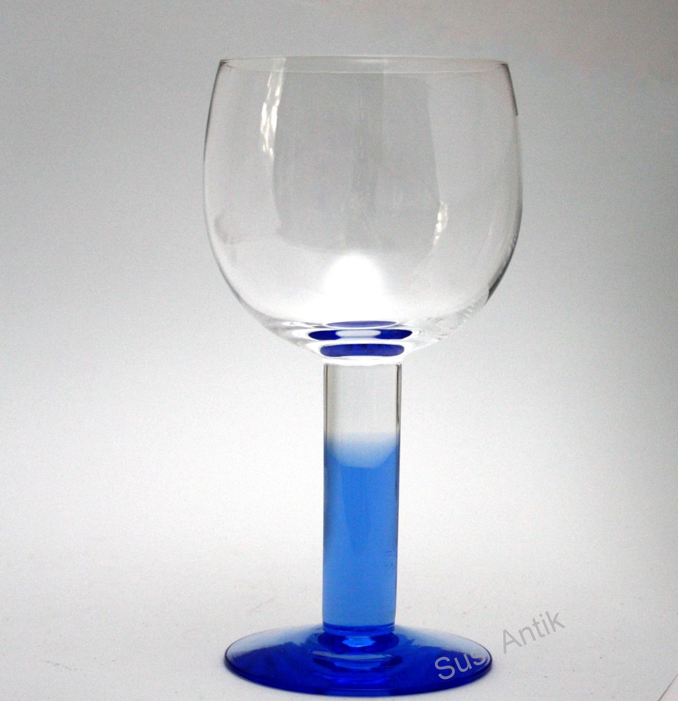 Iittala, Finland, Mondo med blå farve i stilk. Designet af Kerttu Nurminen i 1988. I produktion indtil 2003. Hvidvin. Højde 16,5 cm. Diameter 7,5 cm. Pris: SOLGT