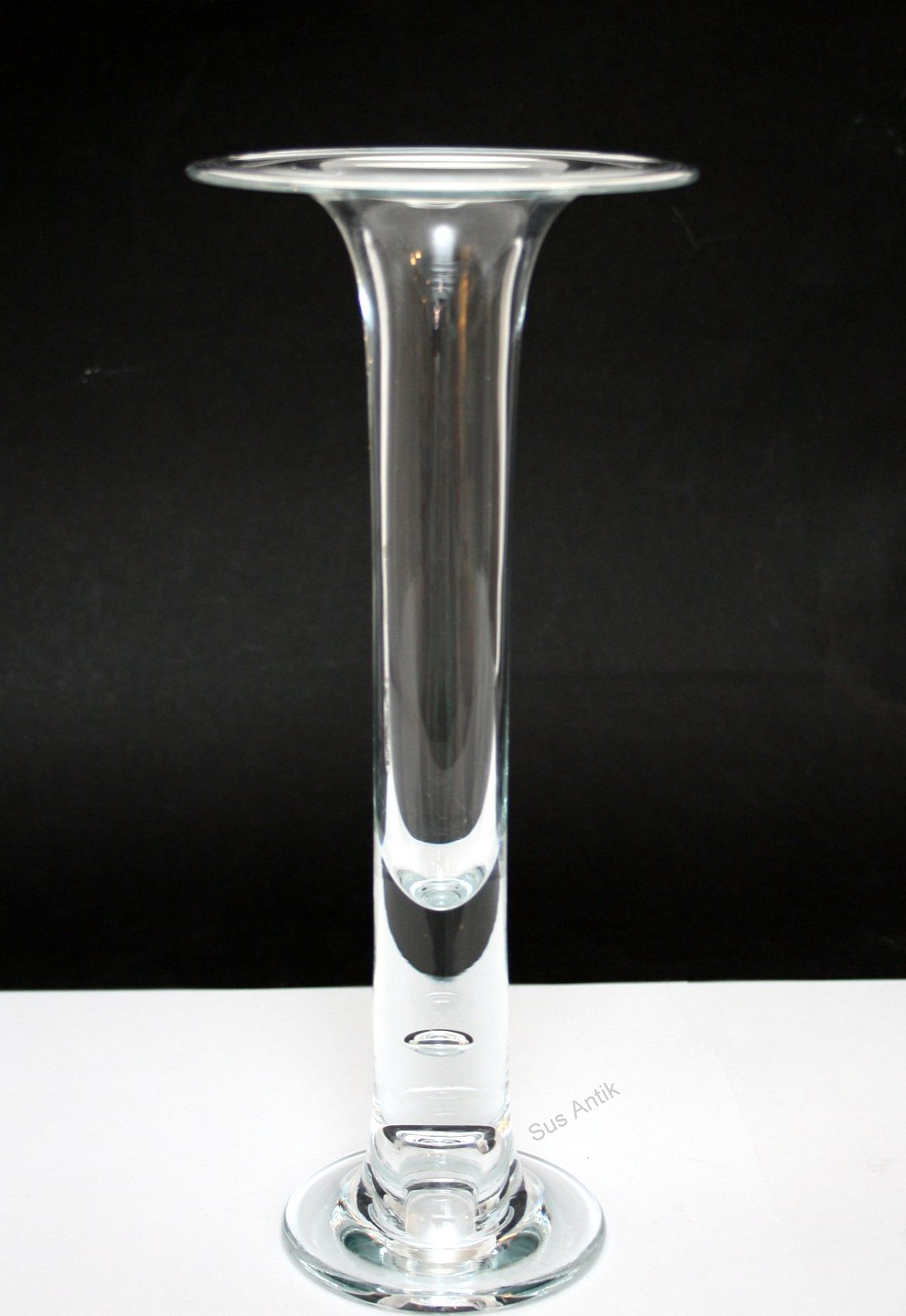 Holmegaard, Merkur Høj vendbar lysestage/vase med luftboble, designet af Michael Bang 1984. Blålig tone. Højde 24,5 cm. Pris: SOLGT