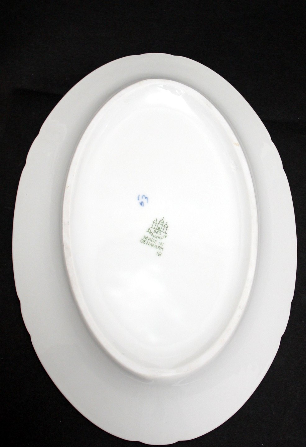 Bing og Grøndahl, Blåmalet (Musselmalet). Ovalt mindre fad. Nr. 18. Produceret 1958-1962. Længde 25,5 cm. Bredde 18 cm. Højde 3 cm. II. sortering. Flot stand. Pris: SOLGT