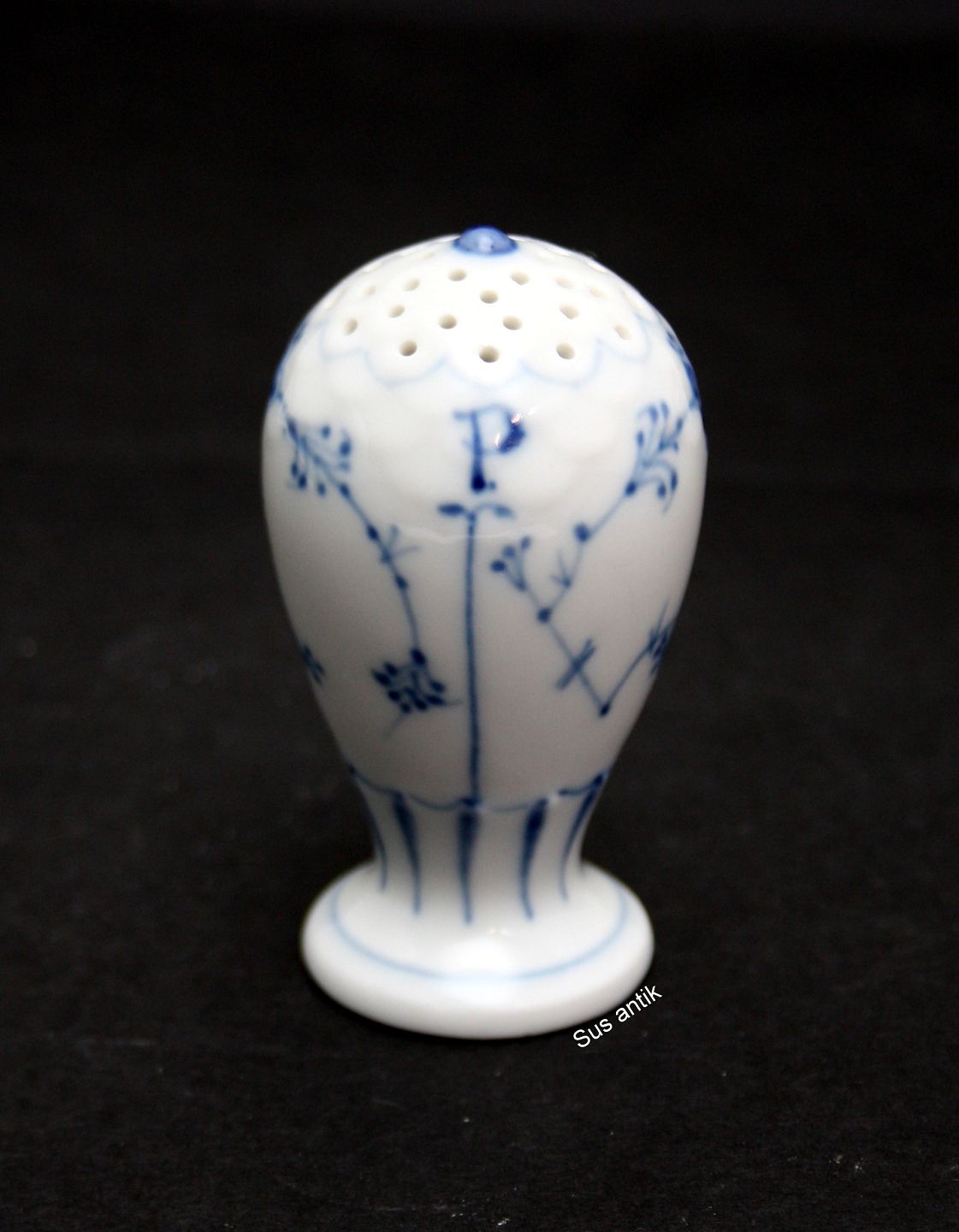 Bing og Grøndahl, Blåmalet (Musselmalet). Peberbøsse med malet P nr. 1002 med B&G gummiprop. Højde 7,5 cm. Pris: SOLGT