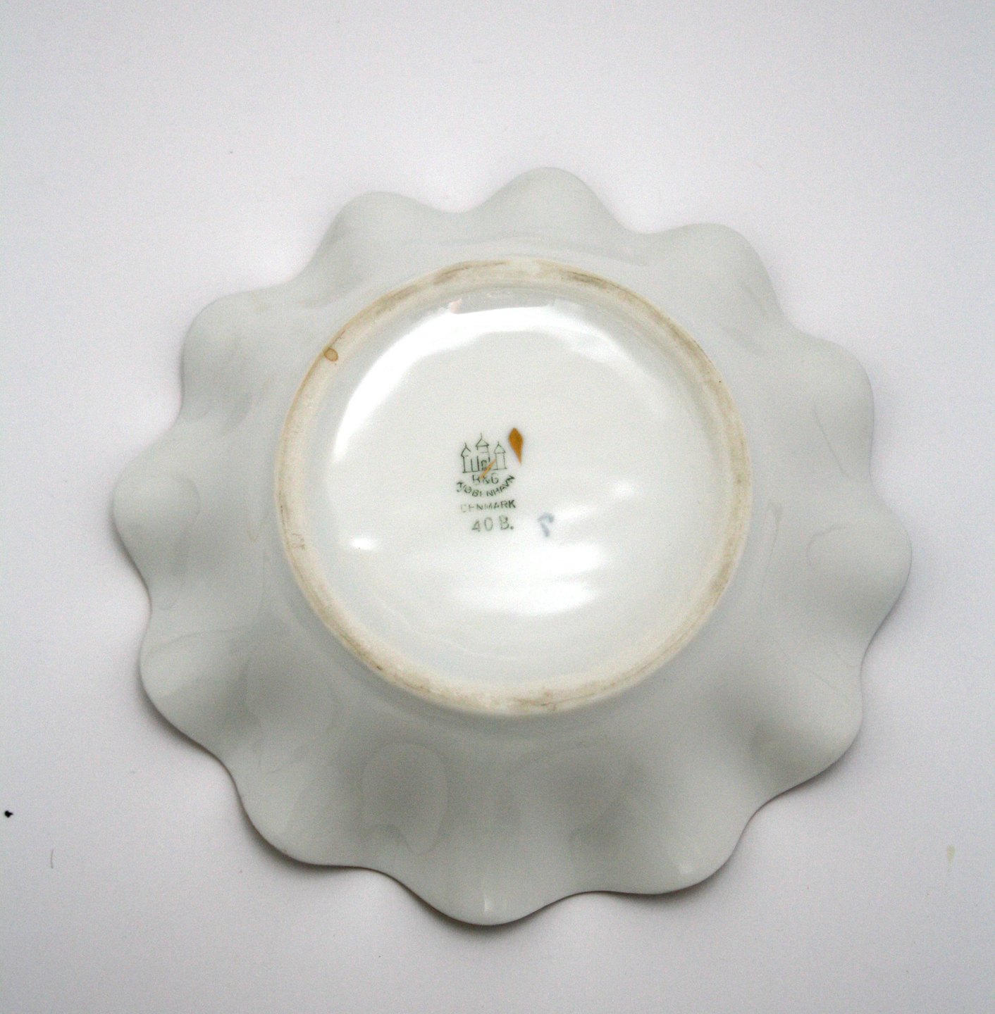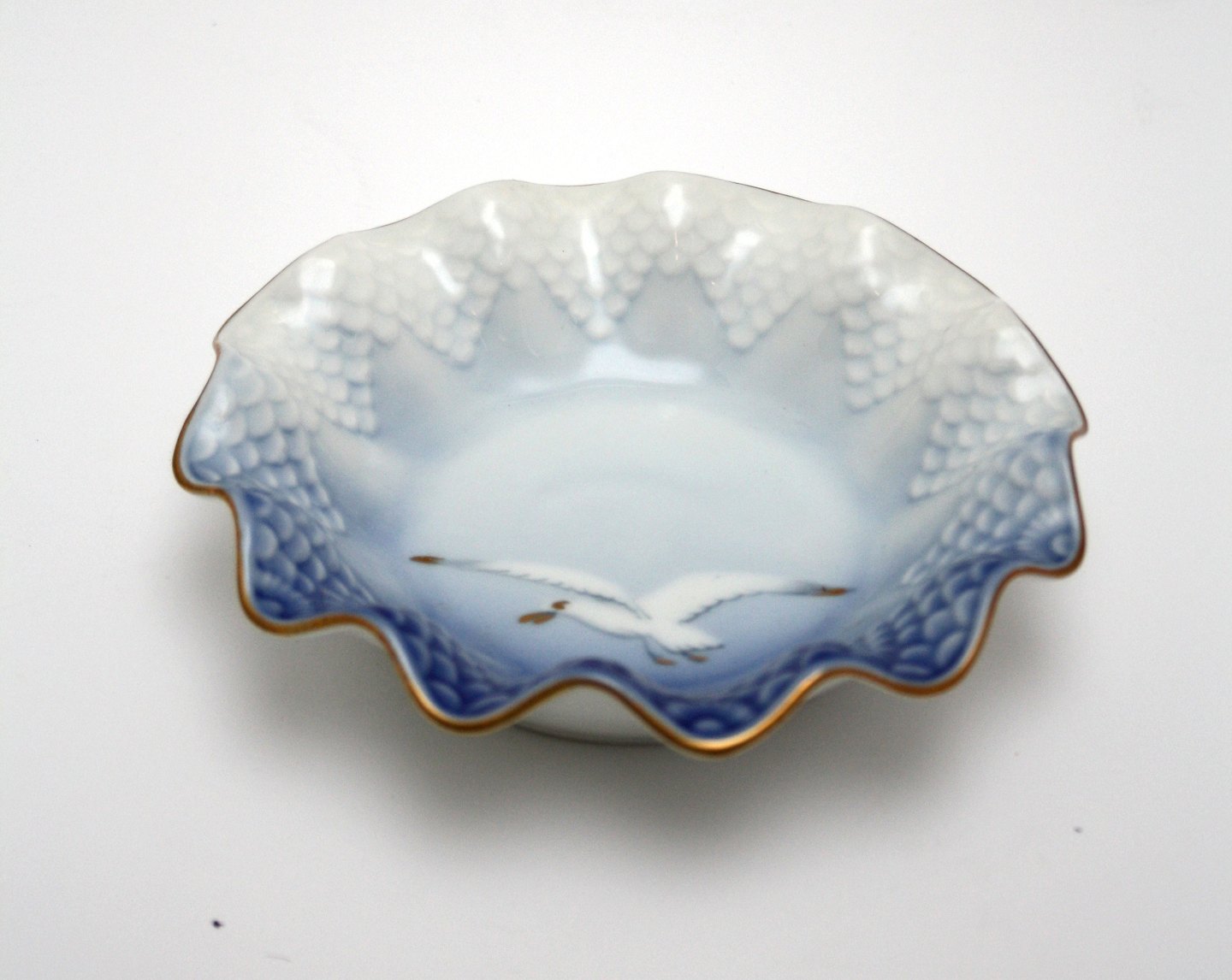 Bing & Grøndahl, Måge med guld, Skål med bølget kant. Nr. 40B. Produceret 1962-1970. Højde 3 cm. Diameter 14 cm. Fin stand. Pris: SOLGT