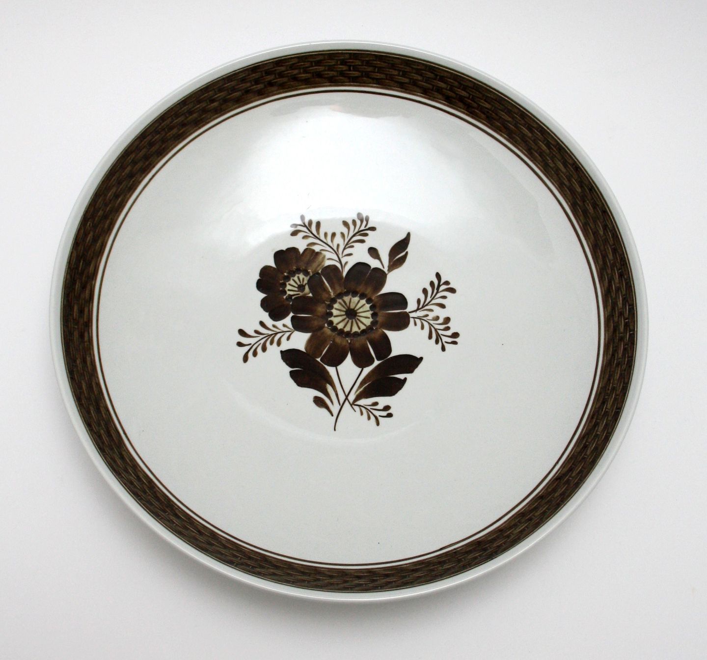 Royal Copenhagen, Tranquebar (Trankebar) fajance med brun tulipan og flettet bort designet af Christian Joachim. Lav skål. Nr. 45/936. Højde 4,5 cm. Diameter 24,5 cm. Flot stand. Pris: SOLGT