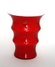 Holmegaard, Karen Blixen rød vase, opalhvid indvendig. Designet af Anja Kjær fra 2000. Signeret. Vasens form er inspireret af afrikanske kvinders hals og armringe. Højde 17 cm. Diameter 14 cm. Pris: SOLGT