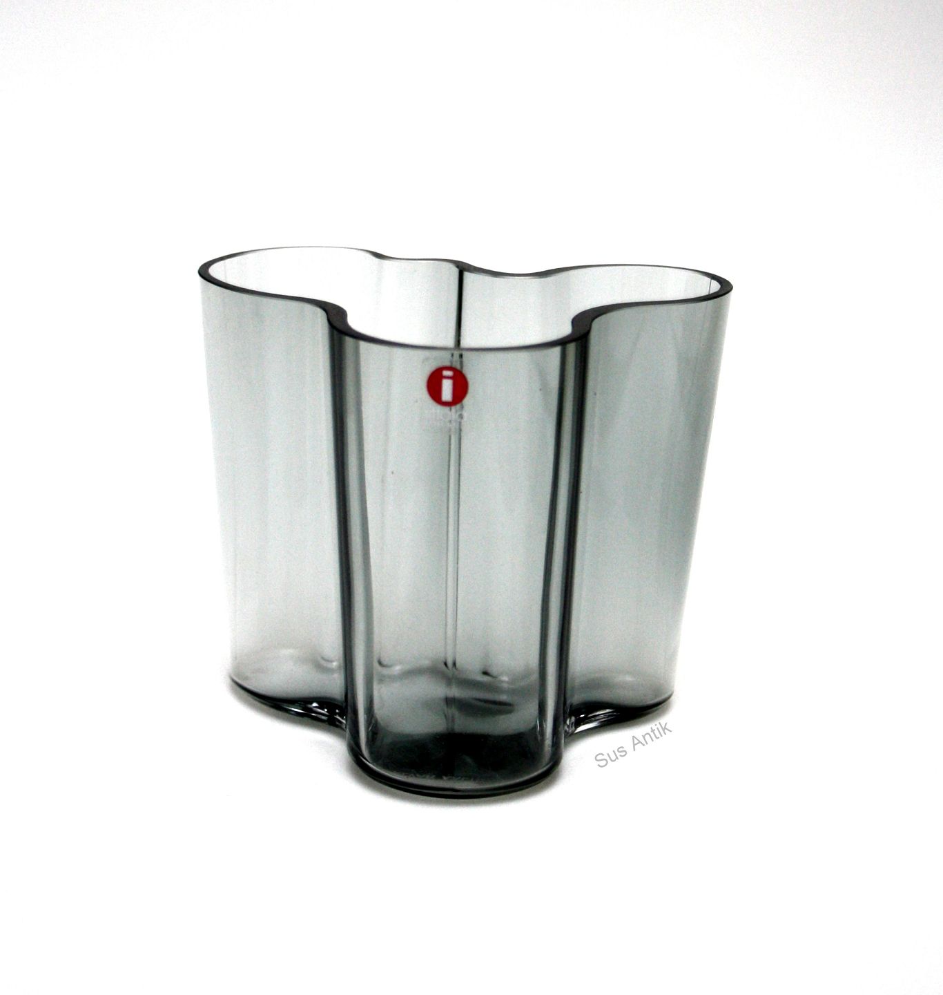 Iittala, Finland, Alvar Aalto, Smokefarvet lille vase i Collection serien. Højde 9,4 cm. Længde 11x11 cm. Pris: SOLGT