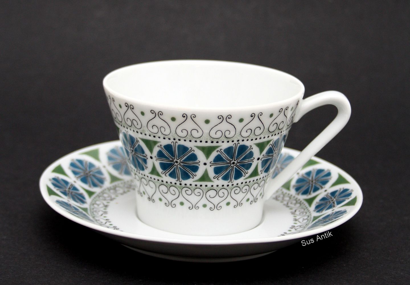 Uppsala/Ekeby LE, Karlskrona, Sweden, Kaffekop med underkop. Højde 5,6 cm. Diameter 8 cm. Pris: SOLGT