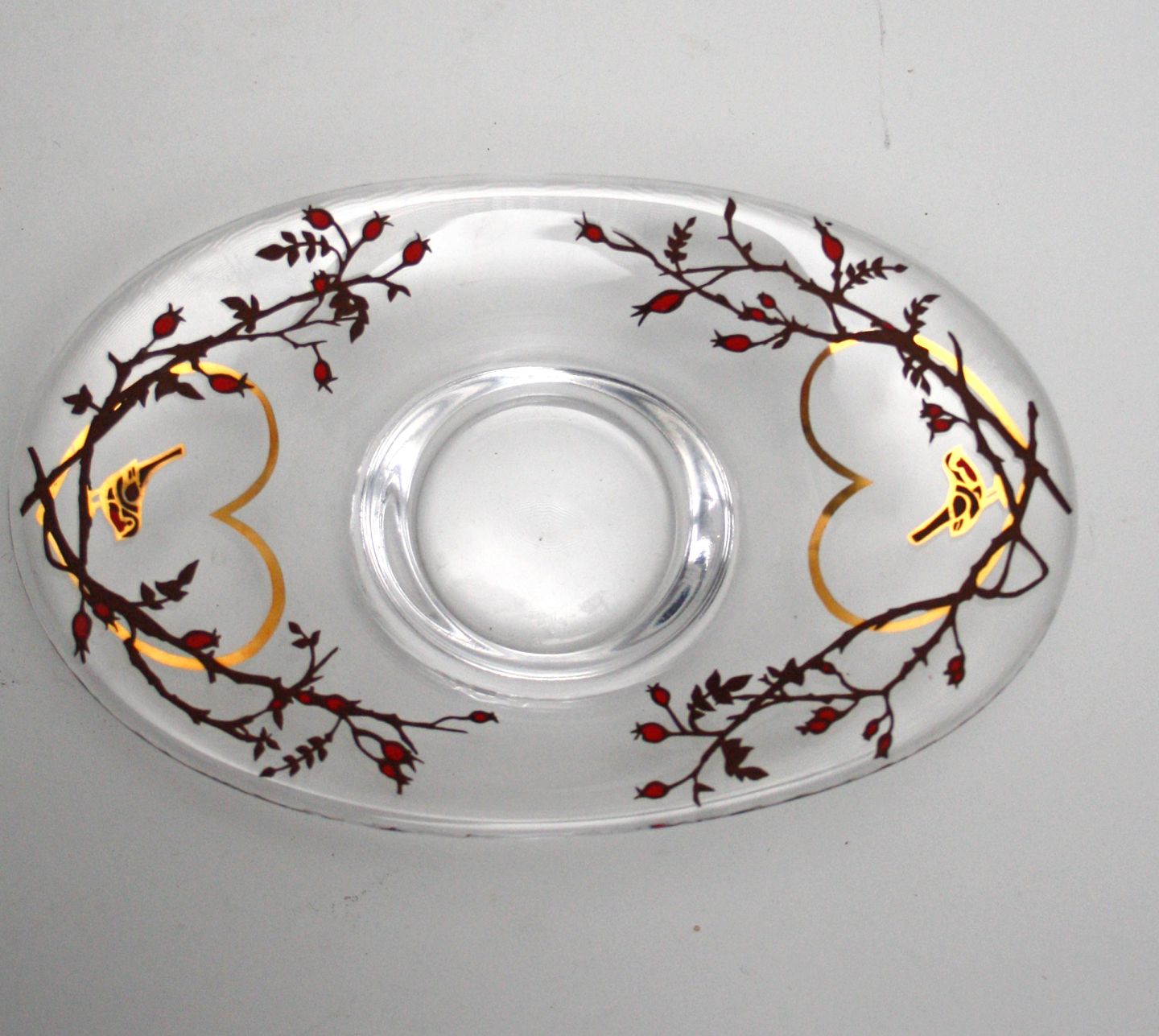Holmegaard, Golden Christmas kalenderstage 2004 Hybenranker og fugle. Designet af Michael Bang/Peter Svarrer og Jette Frölich. Længde 18,5 cm. Bredde 12 cm. Højde 3,5 cm. Pris: SOLGT