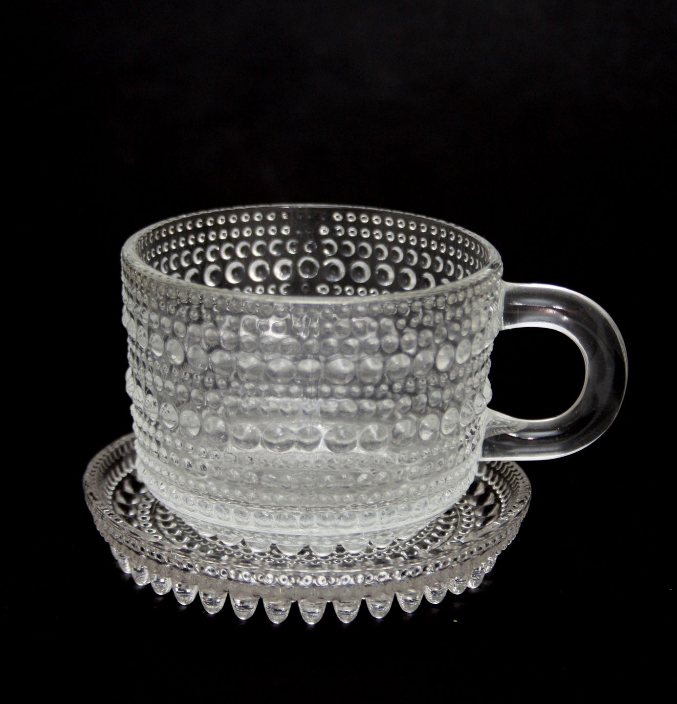 Iittala, Finland. Kastehelmi, Kop, hotdrink glas, glögglas. Designet af Oiva Toikka for Notsjö i 1964. Højde 55 cm. Diameter 7 cm. Underkop diameter 8,5 cm. Pris: SOLGT