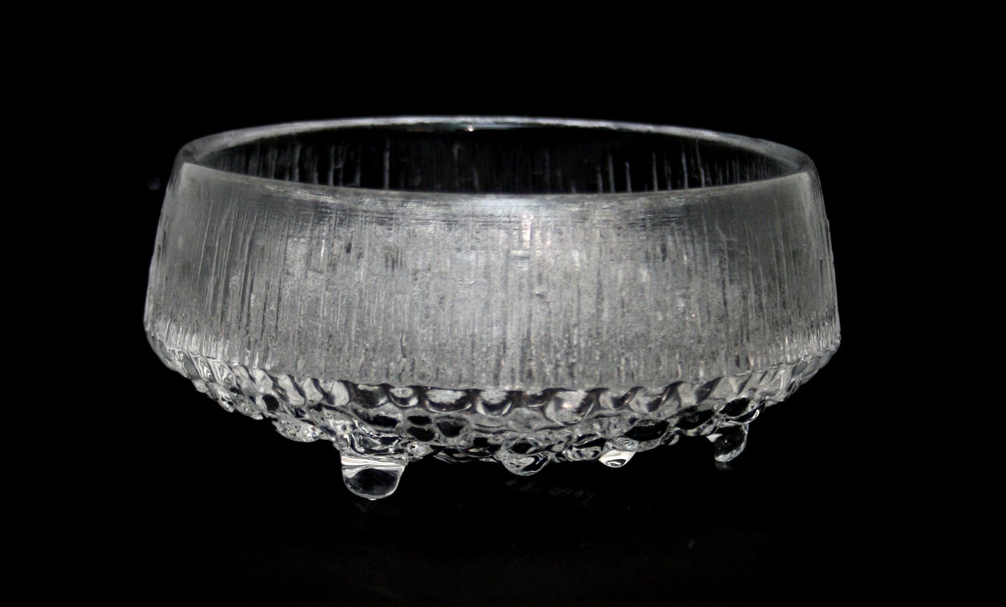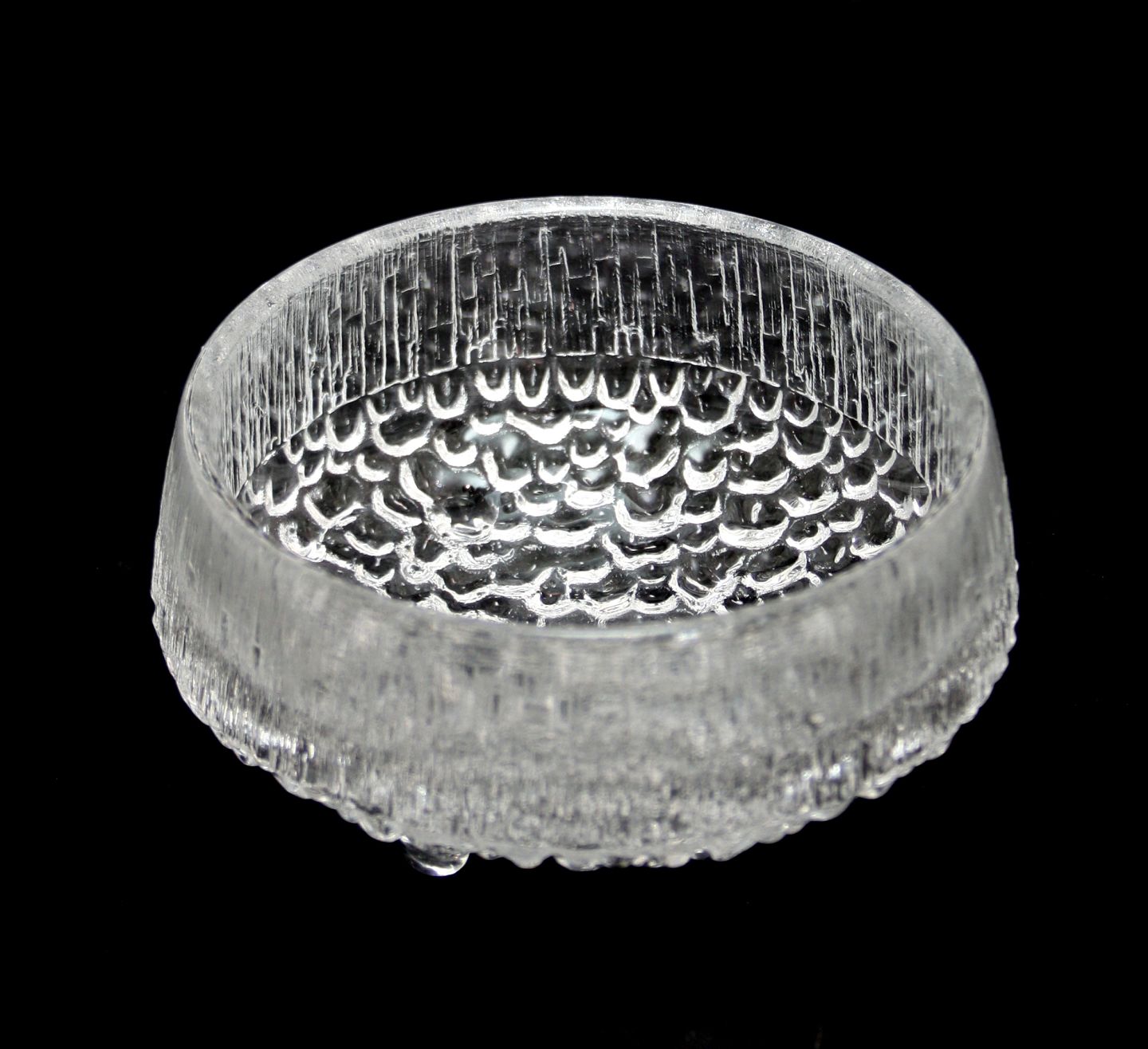 Iittala, Finland, Ultima Thule lille serveringsskål på 3 fødder. Designet af Lapio Wirkkala i 1968. Højde 5 cm. Øverste diameter 10,5 cm. Pris: SOLGT