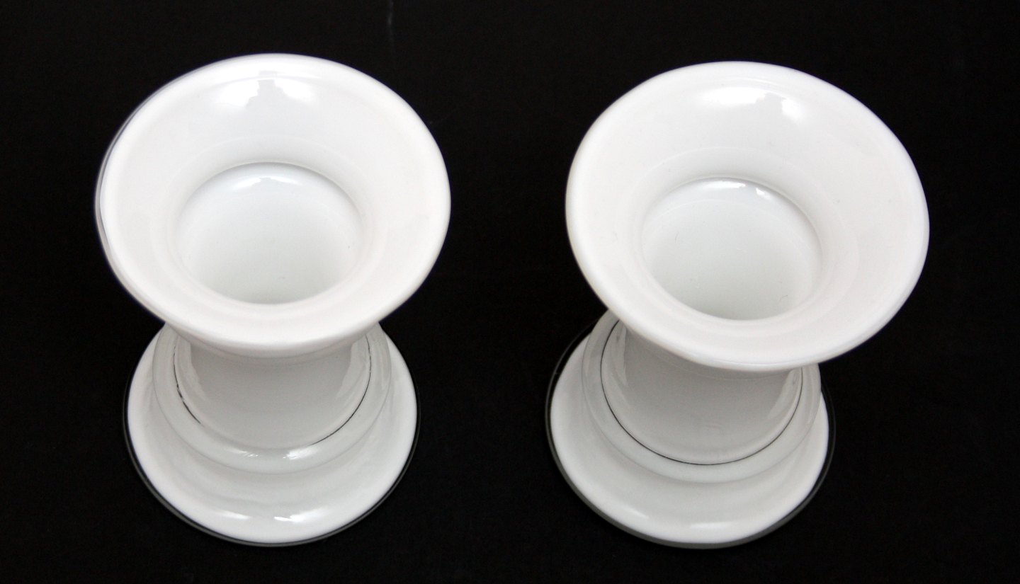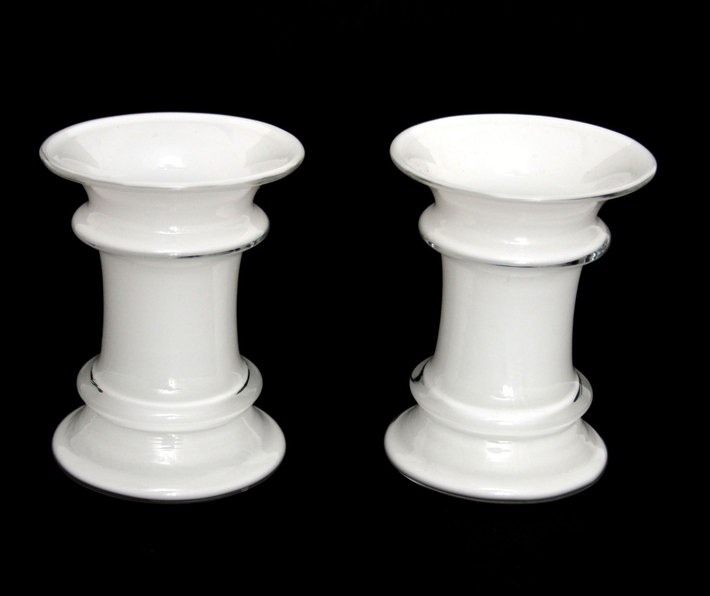 Holmegaard, MB serien opalhvid glas med klart overfang. Designet af Michel Bang i 1981. Ingen signatur i serien. Lille vase sjælden. Højde 8 cm. Øverste diameter 6,5 cm. II. sortering. Pris: SOLGT