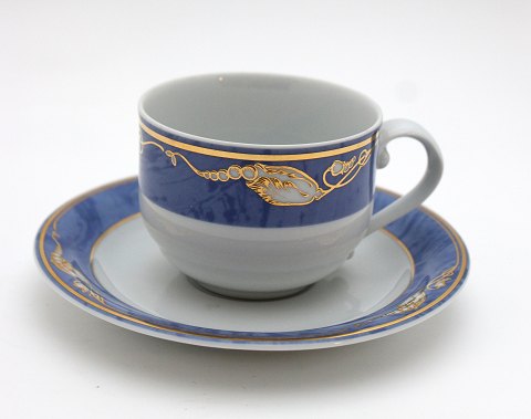 Royal Copenhagen, Blå Magnolia. Blå marmoreret bort dekoreret med gylden blomsterknop. Designet af Flemming Eskildsen. Lille kagetallerken. Diameter 15 cm. Nr. 615. III. sortering, medarbejdersortering. Pris: 40 kr. stk. Lager: 5