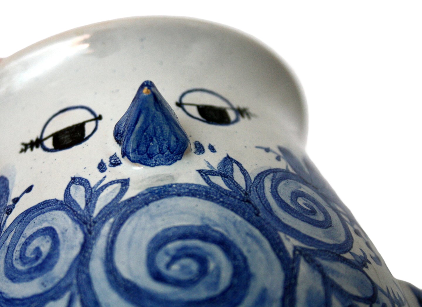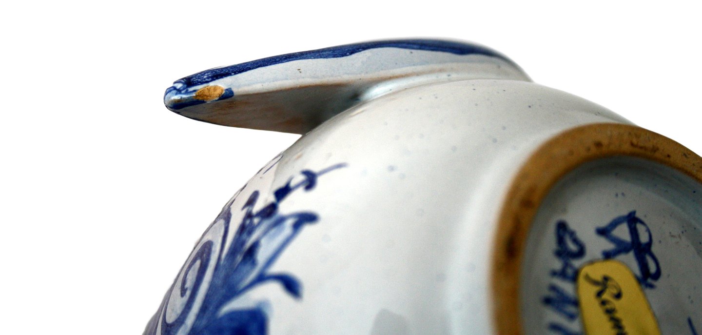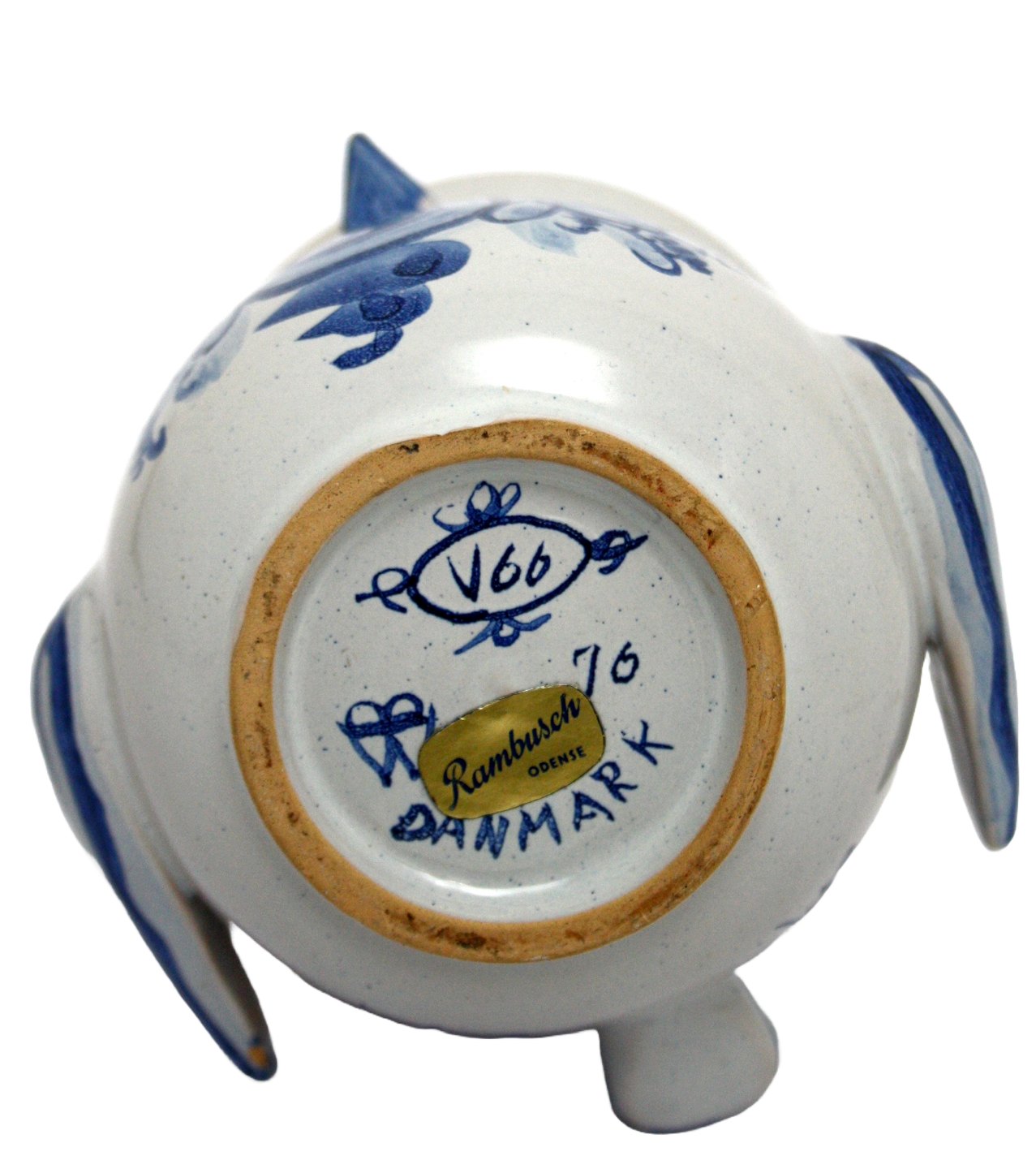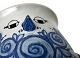 Bjørn Wiinblad, Lille urtepotte med fuglemotiv i blå farver. Nr. V66 1976. Højde 10 cm. Diameter 9,5 cm. Minimale chip glasurafslag under næb og den ene vinge. Pæn stand. Pris: SOLGT