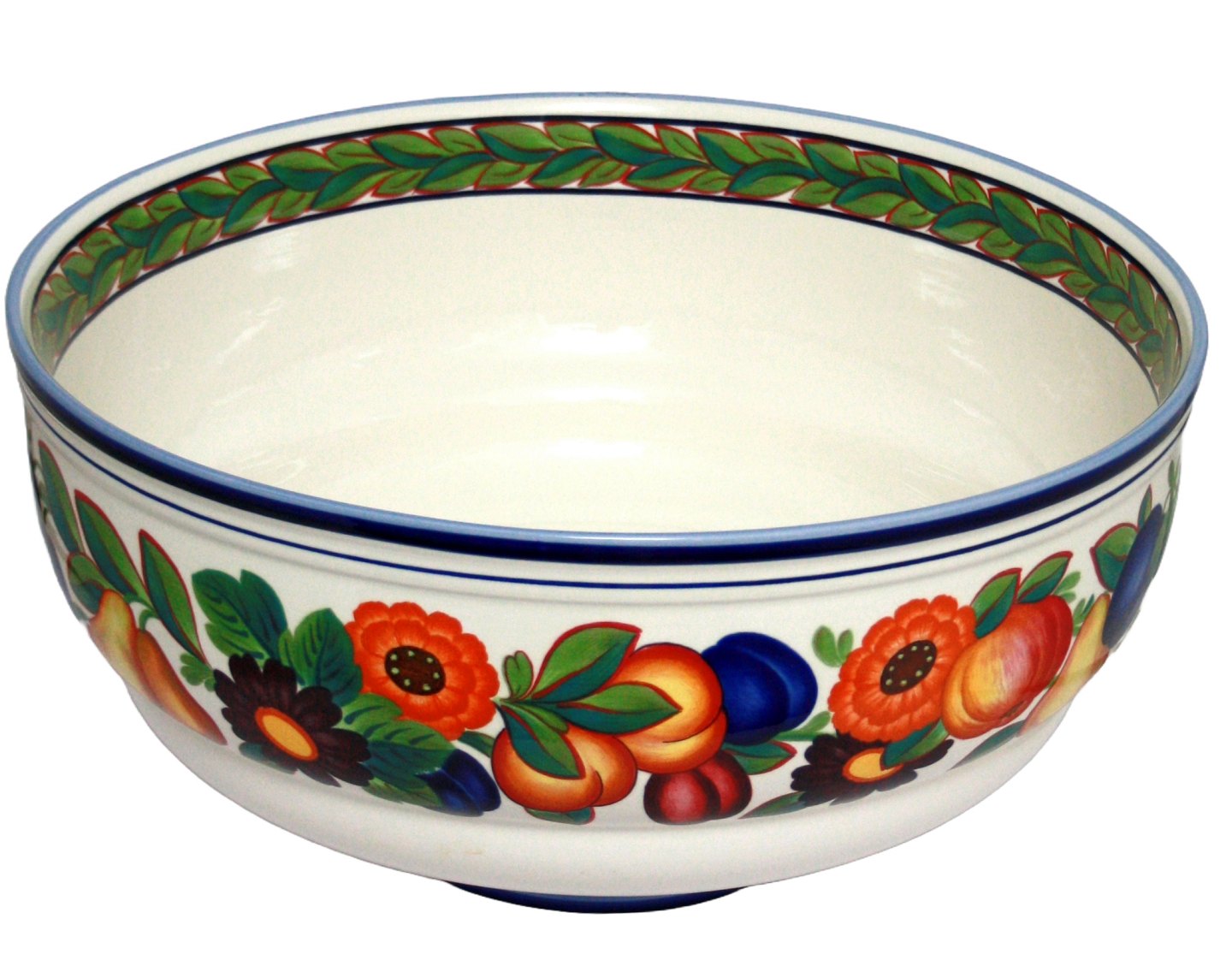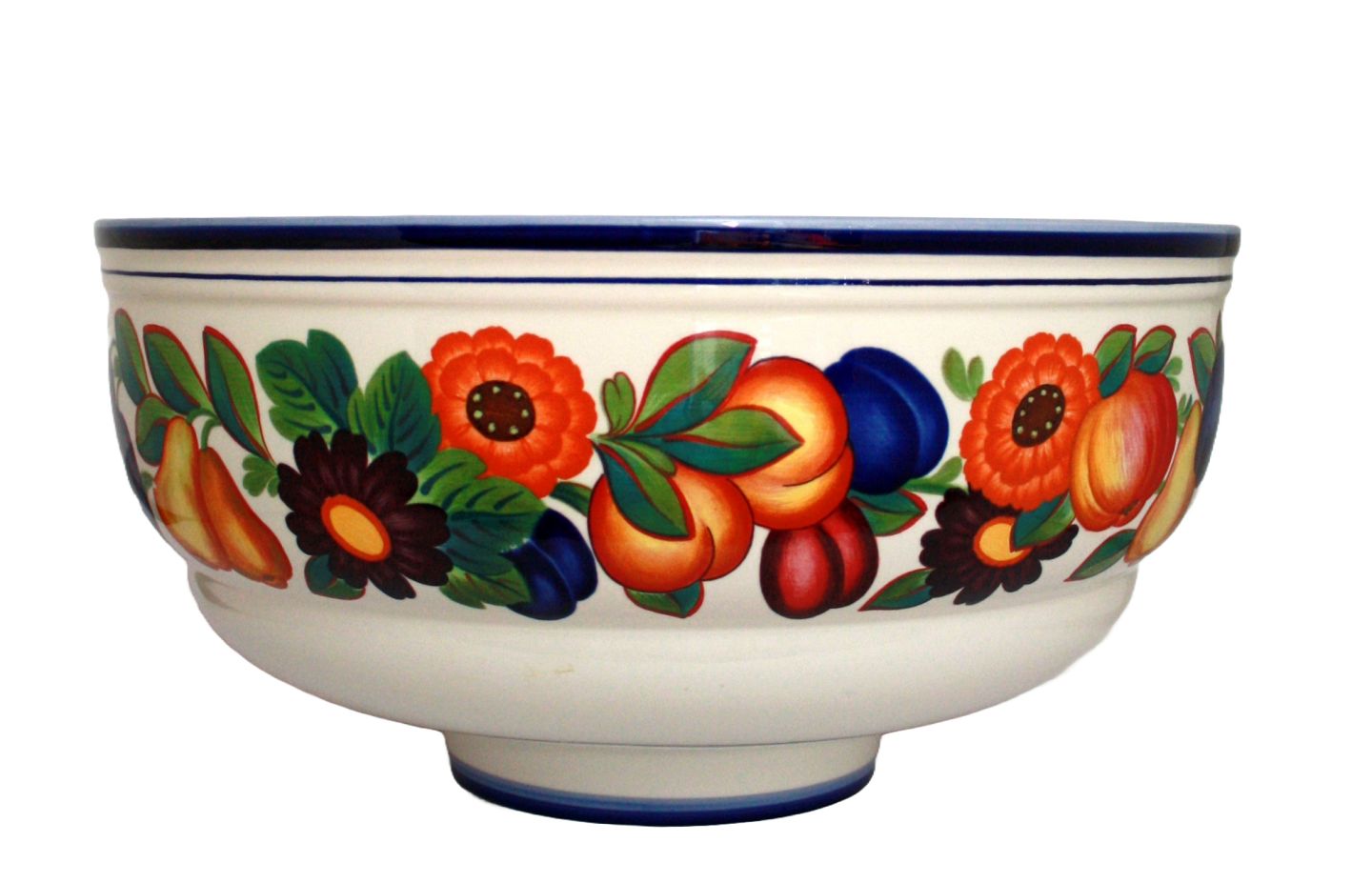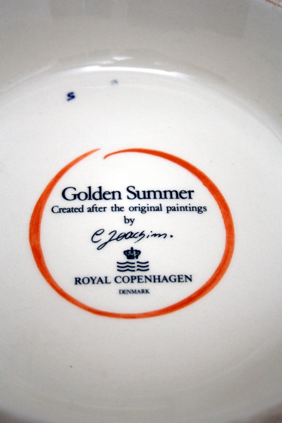 Royal Copenhagen, Golden Summer designet af Chr. Joachim. Kæmpe skål. Højde 20 cm. Diameter 39,5 cm. II. sortering. Flot stand. Pris: SOLGT