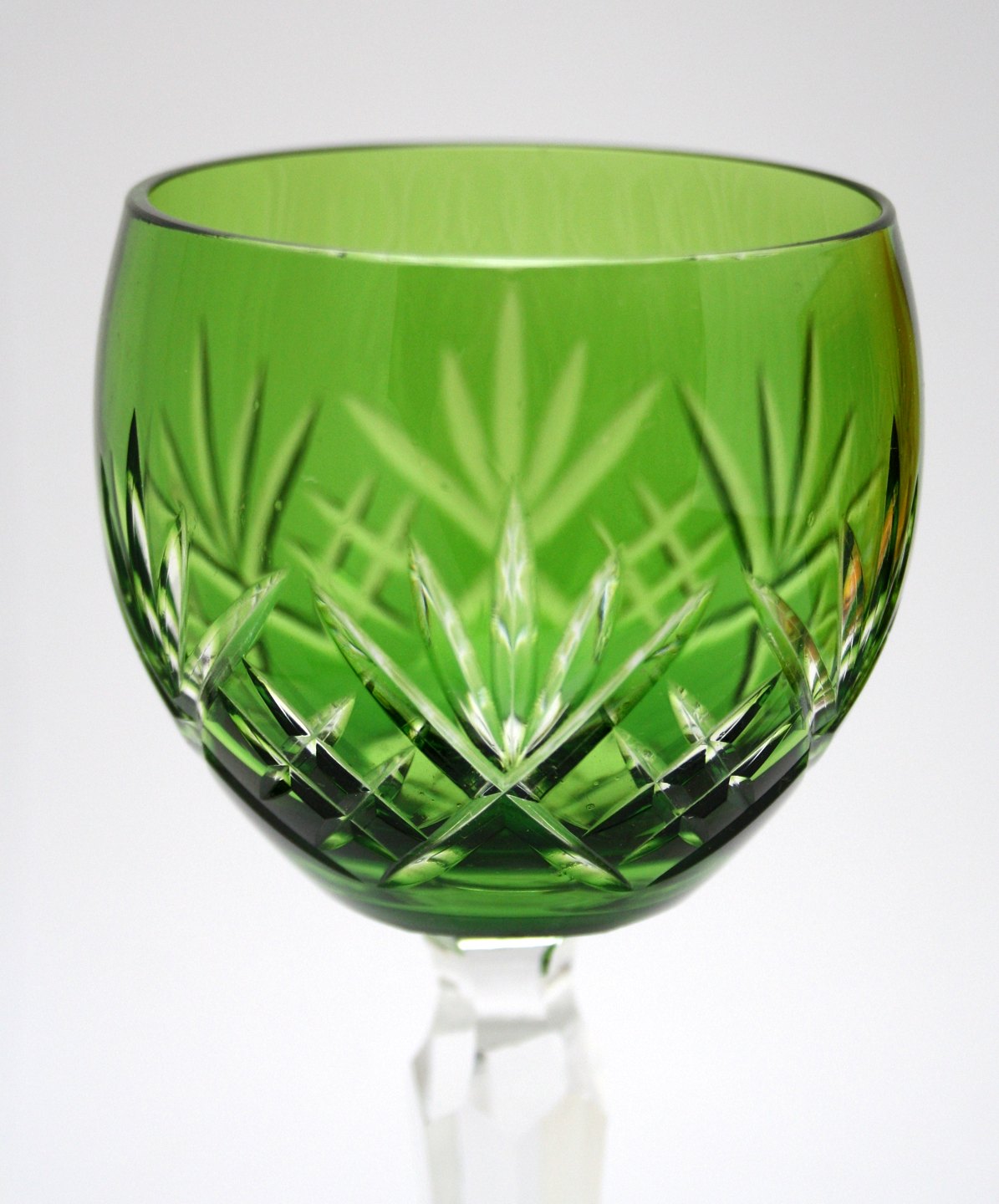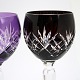 Bøhmisk krystalglas med slibninger på kumme og stilk. Lilla, Grøn, Bordeaux og Gylden. Højde 18,5 cm. Øverste diameter 6,5 cm. Pris for sæt på 4 glas: SOLGT