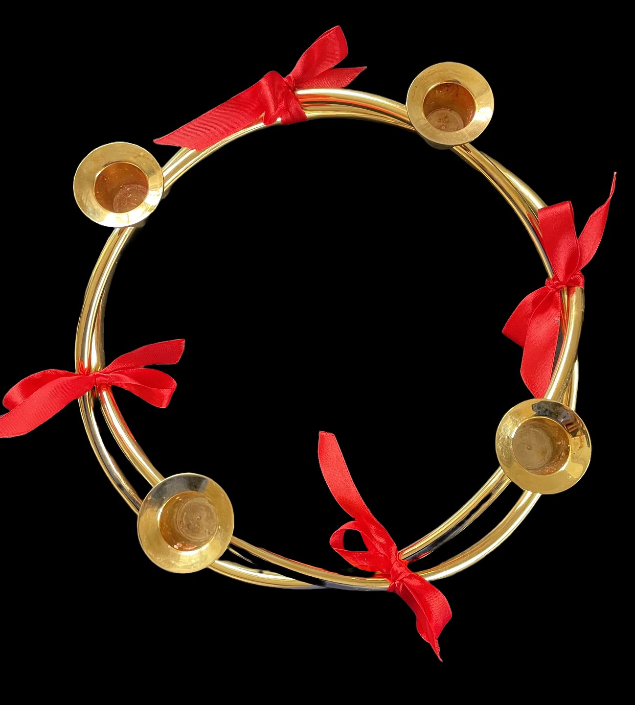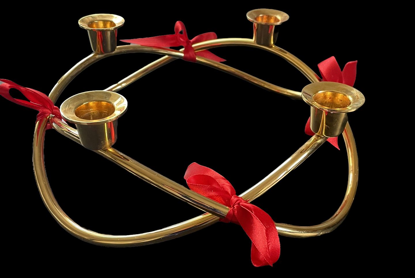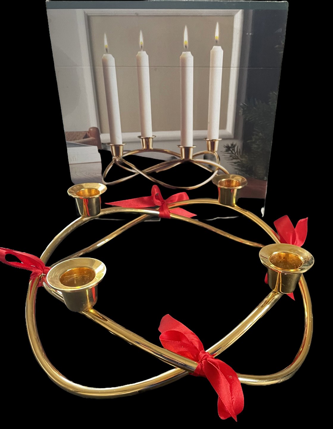 Georg Jensen, Christmas Classics, Adventsstage. Forgyldt med 24 karats guld. Designet af Maria Berntsen. Må ikke pudses, men skal vaskes i varmt sæbevand. Med originalæske og røde bånd. Diameter 25 cm. Højde 9,5 cm. Pris: SOLGT
