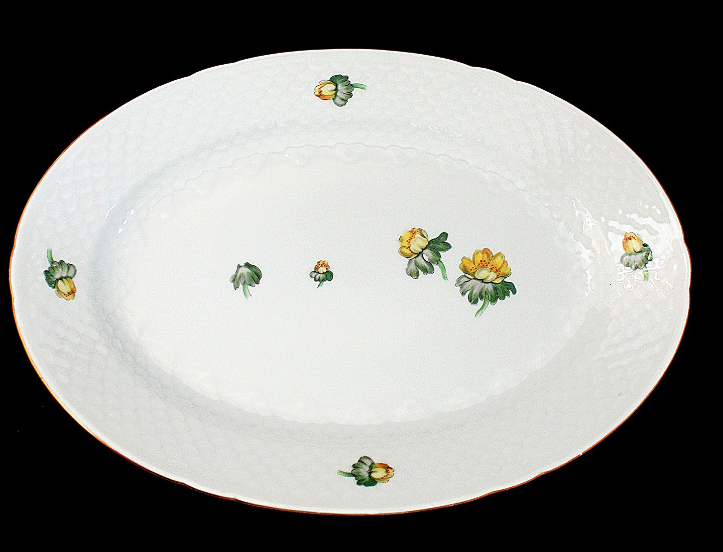 Bing & Grøndahl, Erantis, Serveringsfad, Stegefad. Nr. 16. 34,5 x 23,5 cm. I. sortering. Fin stand med minimal slitage på guldkant. Pris: 325 kr. stk. Lager: 2