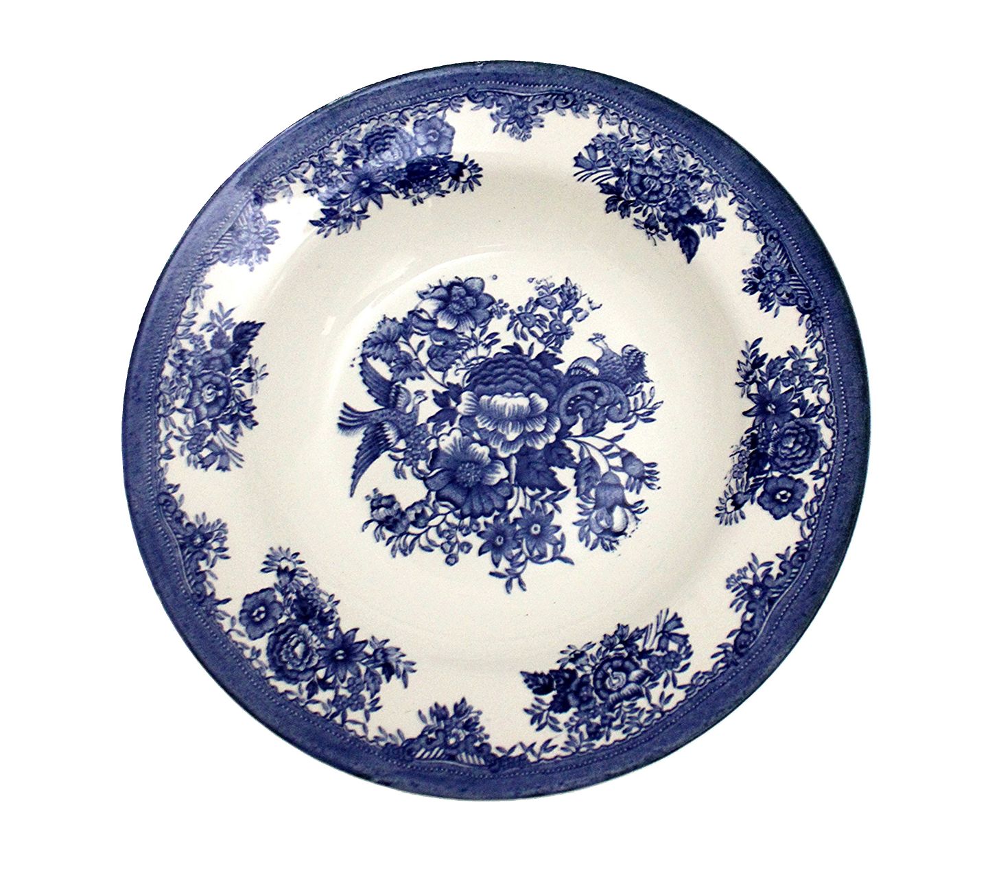Egersund, Norway, Blå Fasan. Dyb middagstallerken. Fajancestel med blomster og 2 fasaner. Der er farveforskel og forskellige stempler alt efter, hvornår de er produceret. Diameter 22 cm. Højde 3,5 cm. Almindeligt brugsslid, men ingen krakeleringer. Pris: 75 kr. stk. Lager: 2