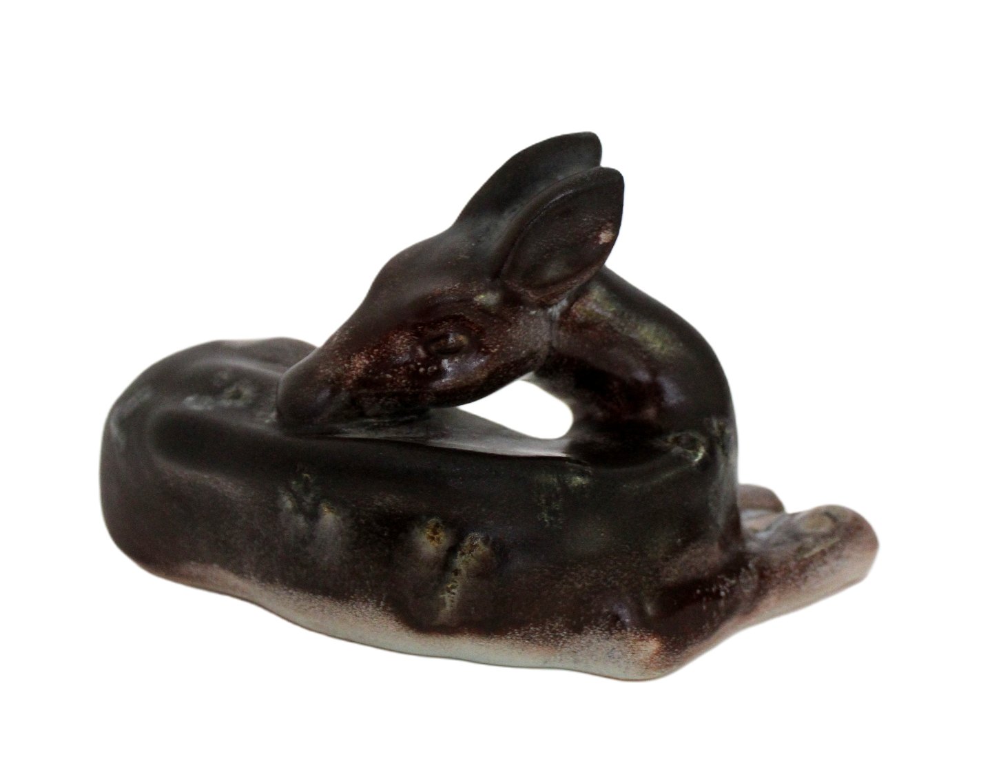 Michael Andersen, Bornholm, Liggende Hjort. Nr. 3225. Ældre model. Længde 14 cm. Højde 8 cm. Pris: 400 kr.