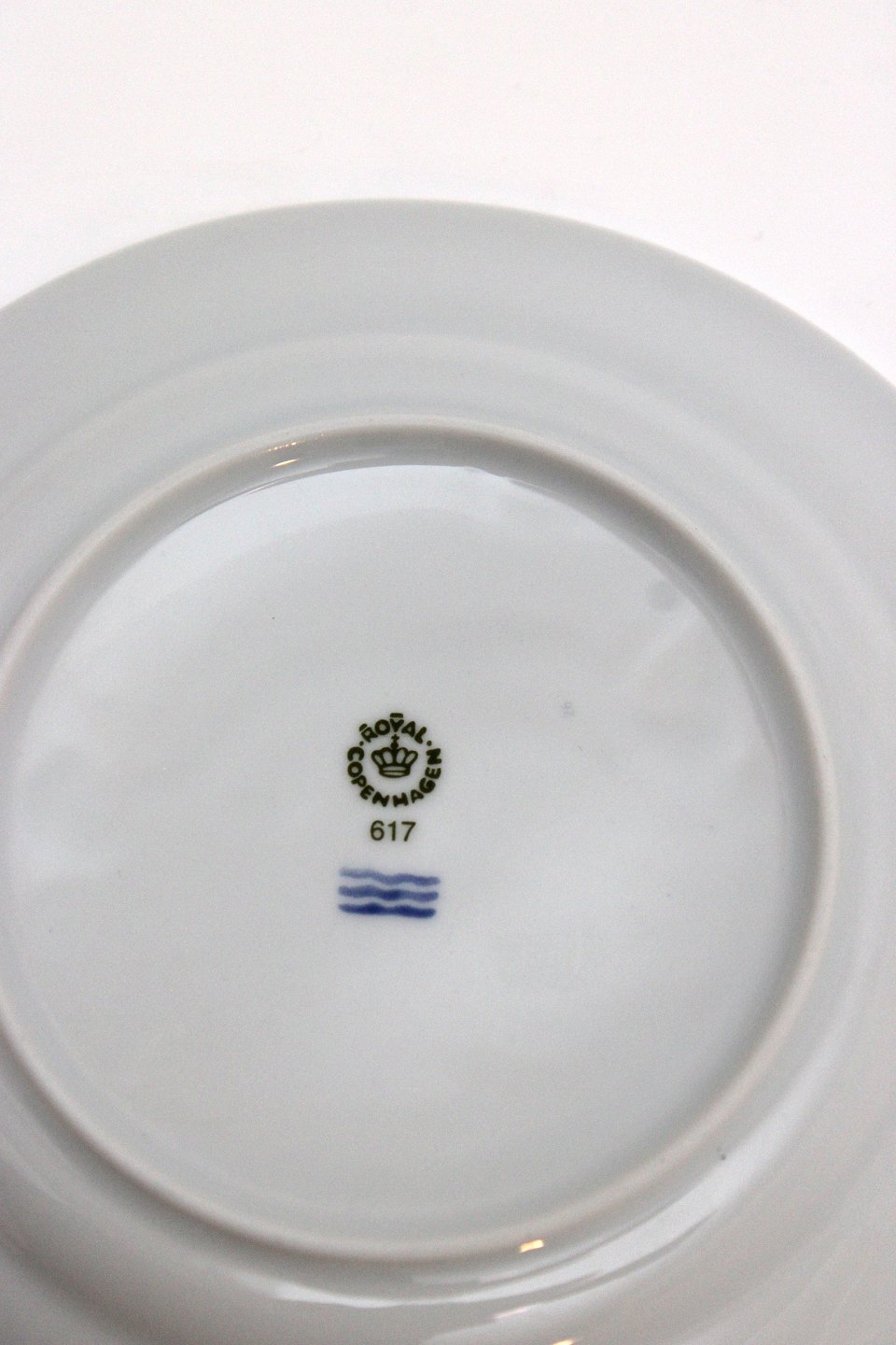 Royal Copenhagen, Blå Magnolia. Blå marmoreret bort dekoreret med gylden blomsterknop. Designet af Flemming Eskildsen. Stor kagetallerken. Diameter 17 cm. Nr. 617. I. sortering. Pris: 50 kr. stk. Lager: 6