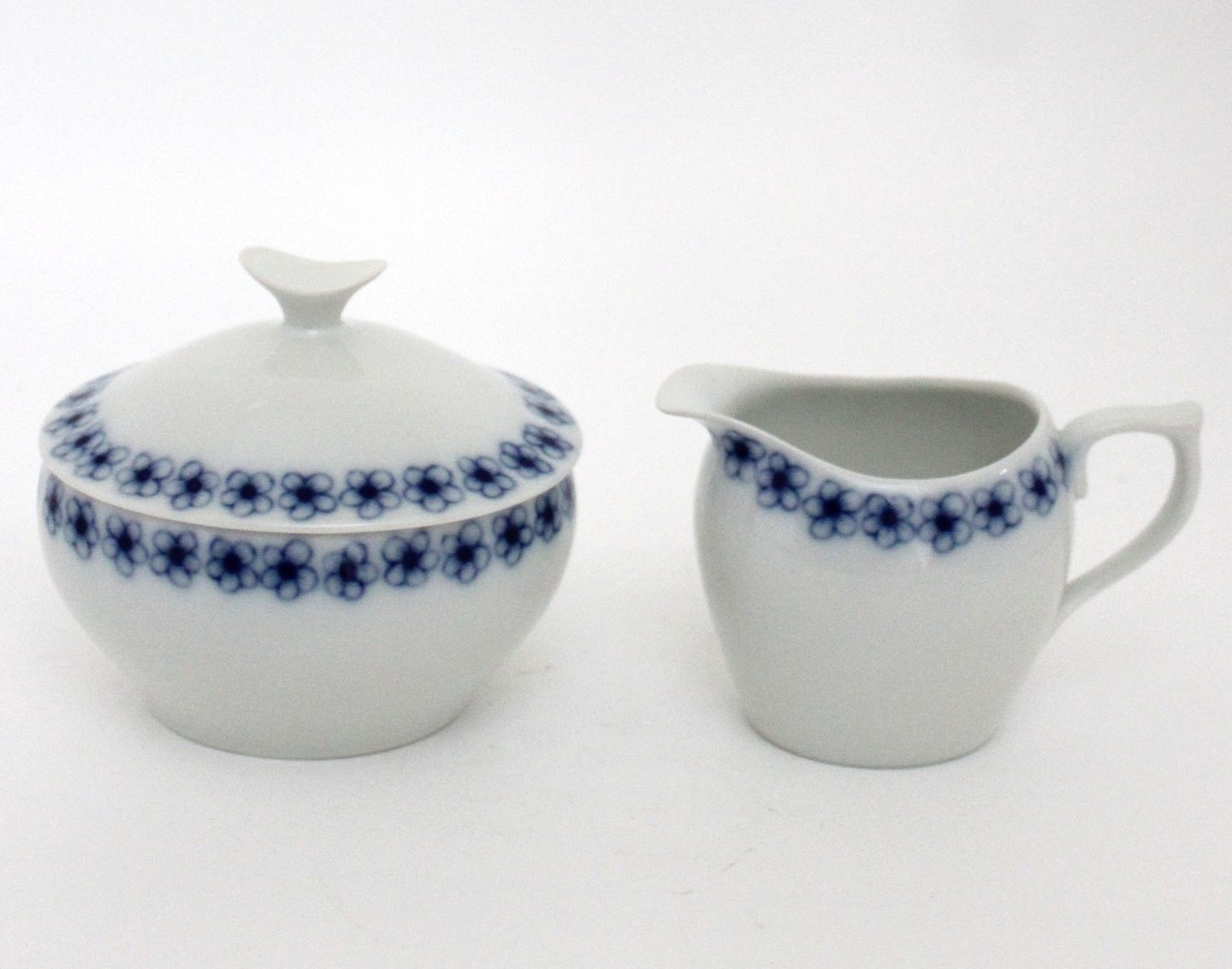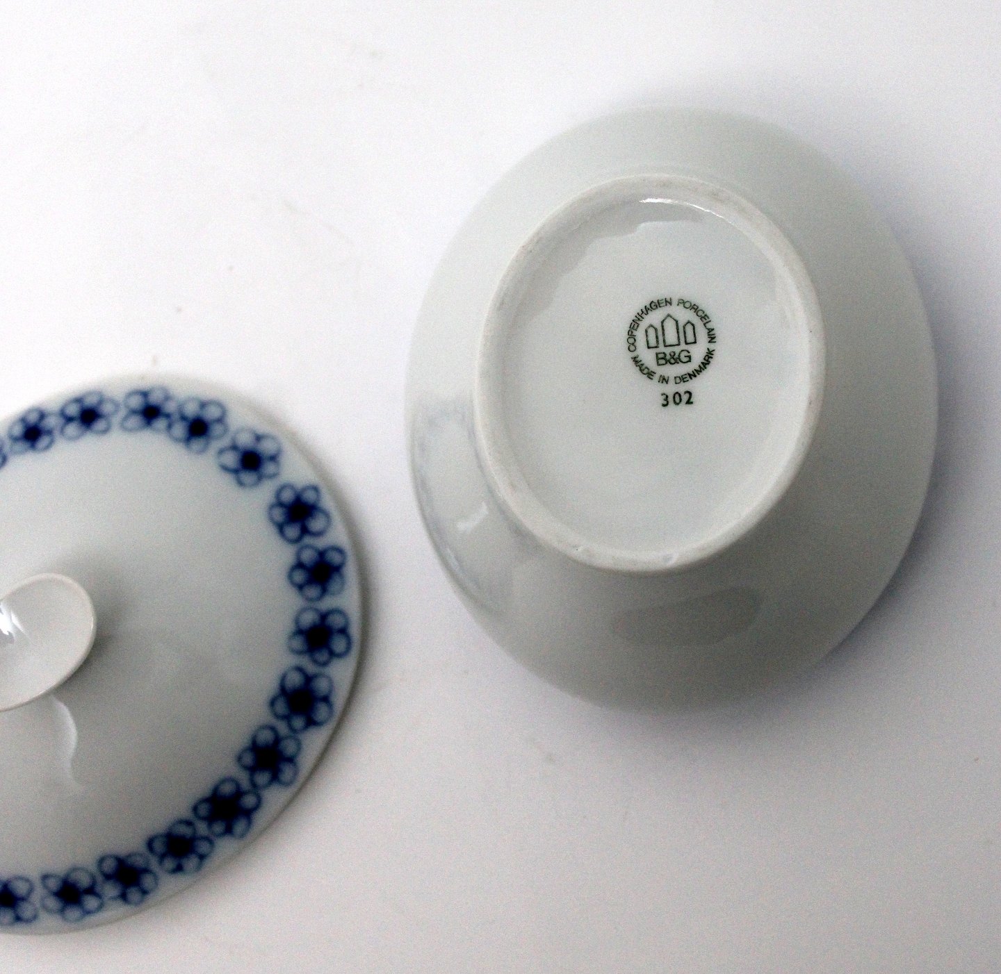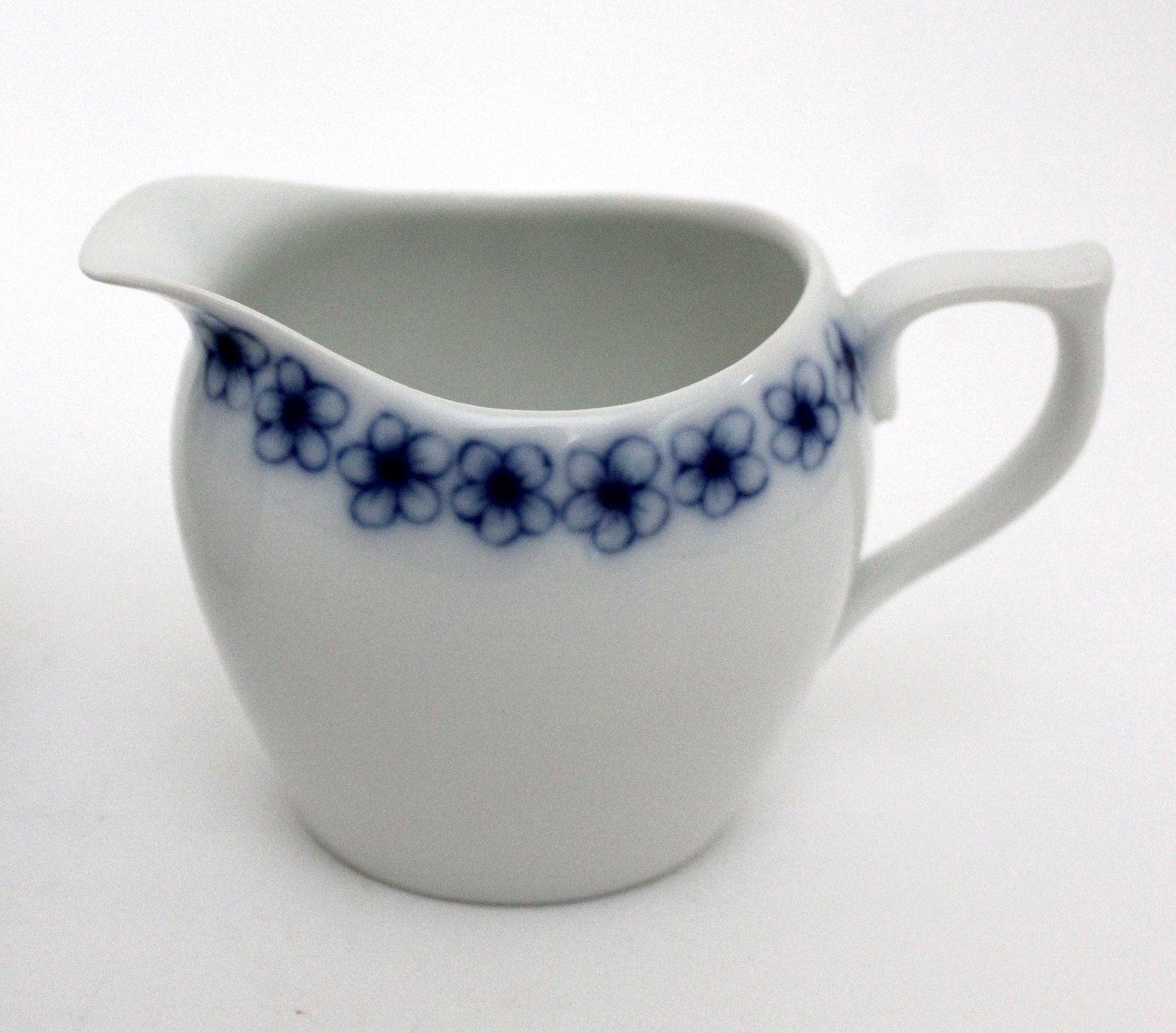 Bing & Grøndahl, Elsa, Hvidt porcelæn med blå blomsterkant.