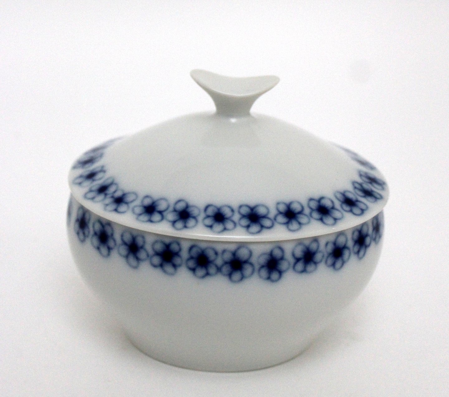 Sukkerskål med låg. Nr. 302. Højde 9,5 cm. Længde 11 cm. Bredde 9 cm.