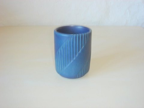 Ipsen Enke blå Cigarbæger med riller og diagonalbånd højde 9 cm, diameter 6,5 cm. Design Alex Sørensen, signeret PIE X nr.14 krone
