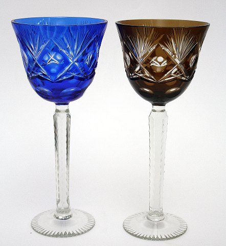 Mathilde Rødvinglas med olivslibninger højde 13,7 cm. Holmegård 1900-1931.