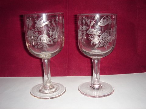 Erindringsglas fra Kastrup ca. 1910. Glasset tv. og billede nr. 2. Højde 16 cm. Der er en del urenheder i glasset (små luftbobler). Pris:SOLGT