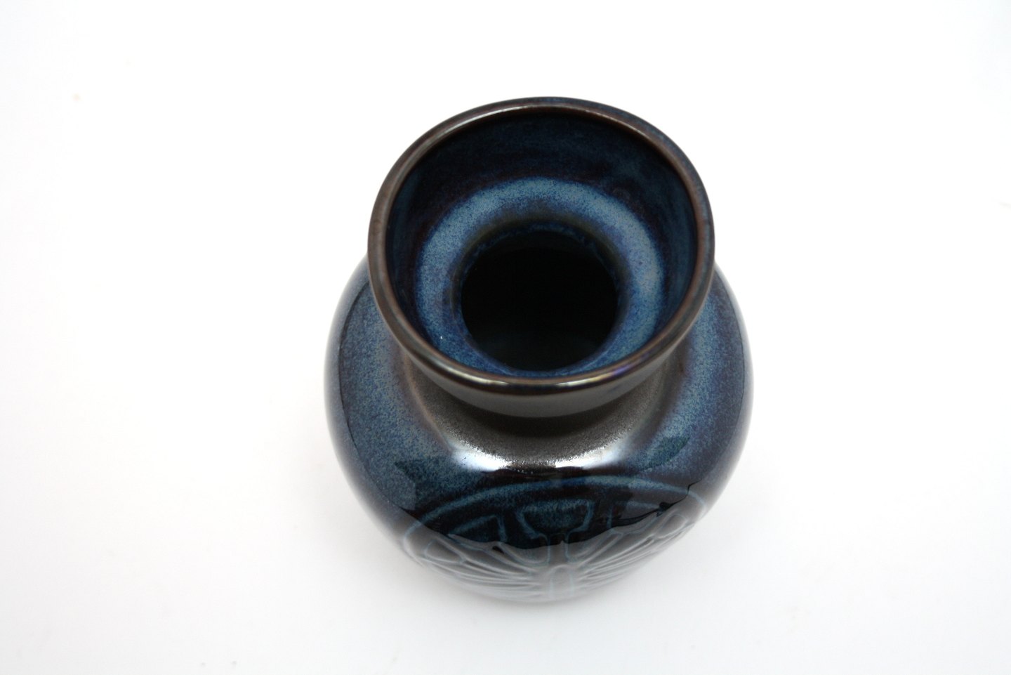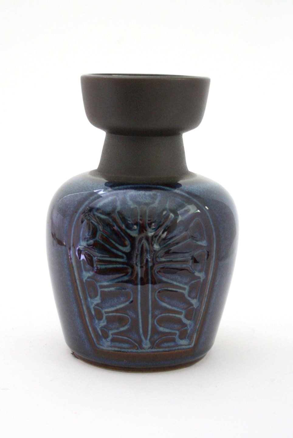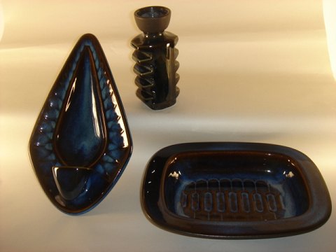 EJ 64 Søholm. Stentøjsserie designet af Einar Johansen i 1964. Reliefdekoration med blå glasur og rå stentøj.