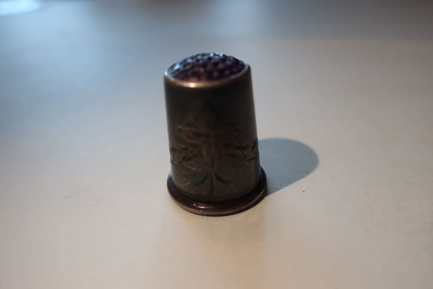 Old thimbles made of silver With a red Fluss With a beautiful decoration in the silver No stamp In a good condition Articleno.: 4-4168