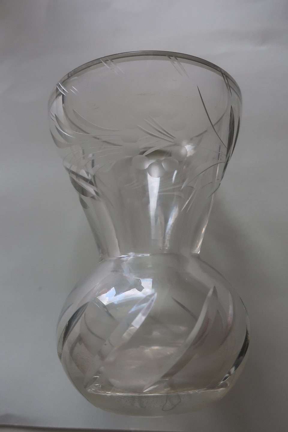 An old vase made of crystal glass With beautiful decorations in the glass H: 10,5cm W: 8cm In a very good condition Articleno.: KM1006