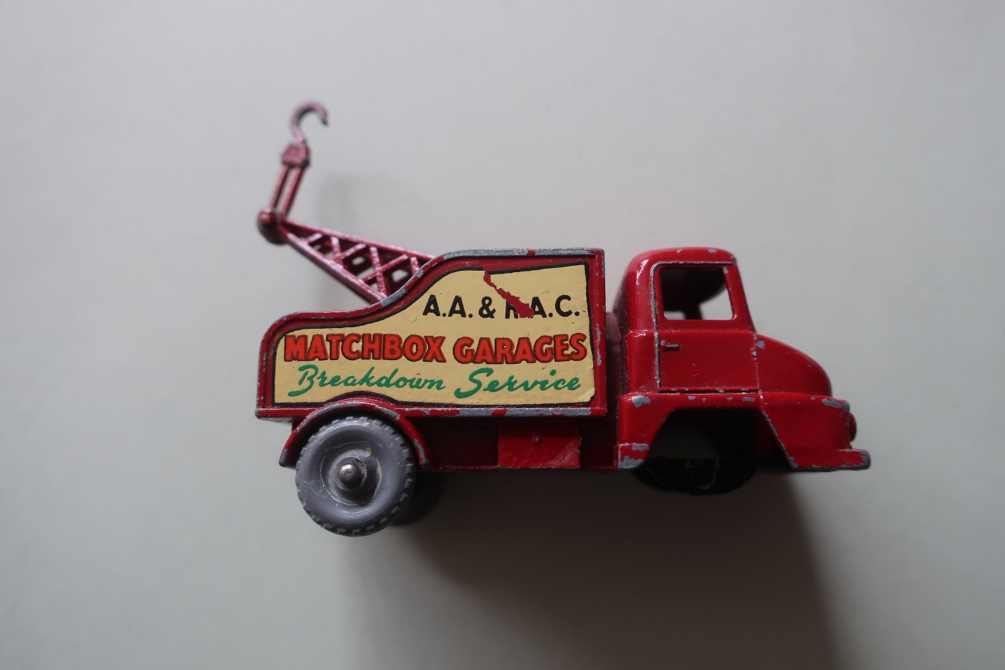 For the collector: Matchbox Garages Thames Trader Wreck Truck A.A. & R.A.C. No. 13 By Lesley Made in England The frontwheels are missing Articleno.: LI29