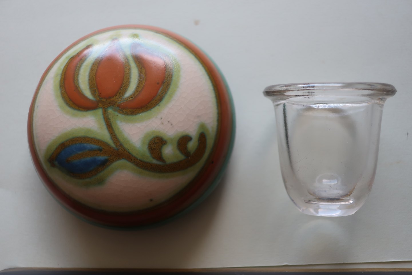 Antique inkpot with the lid and the ink "box"made of glass
